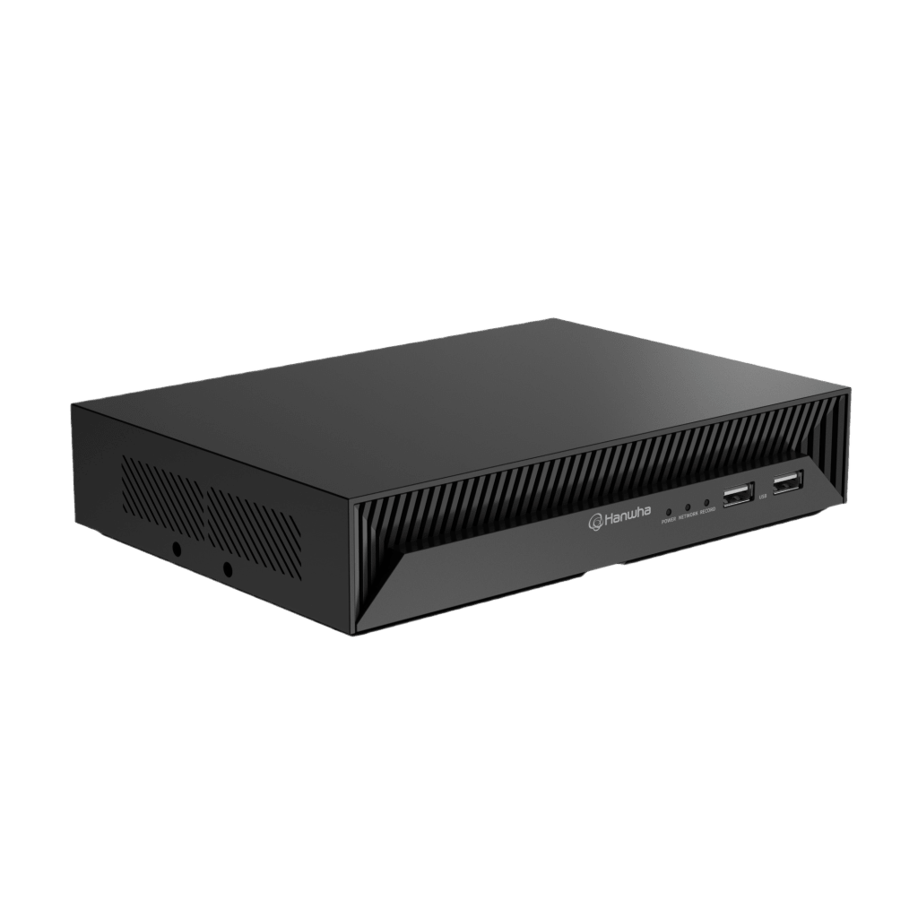 NVR Inteligente 4CH AI / Soporte Cámaras 8MP / Códecs H.265-H.264-MJPEG / Grabación 40Mbps / 4 Puertos PoE / SSD 1TB / Salida HDMI / Soporte ARB / Conectividad P2P / Firma Hanwha Vision