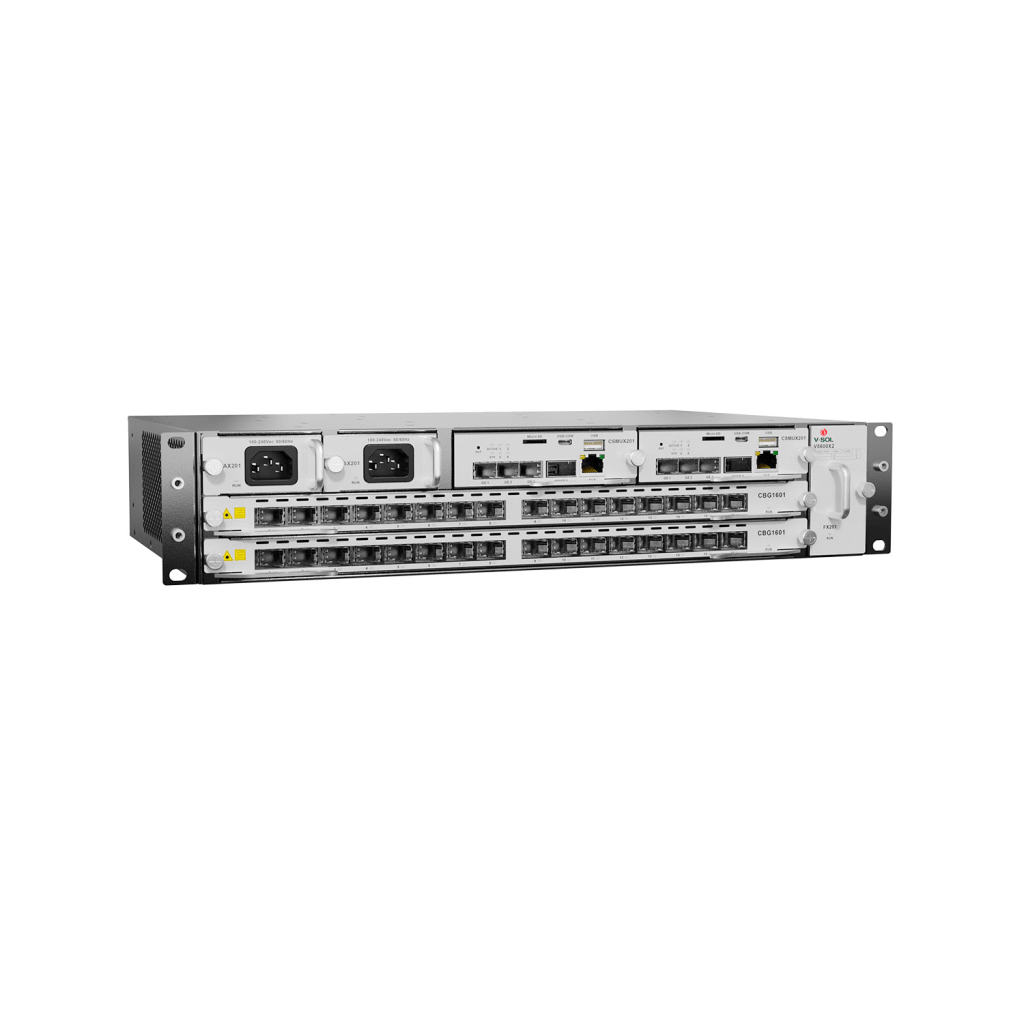 Inicio / Redes e IT / Redes FTTH/PON / OLTs / OLT Modular tipo Chasis GPON/XGS-PON Combo,1 Tarjeta de Servicio de 16 Puertos GPON, 2 Ranuras, 1 Fuente de Alimentación AC, 2 UR
