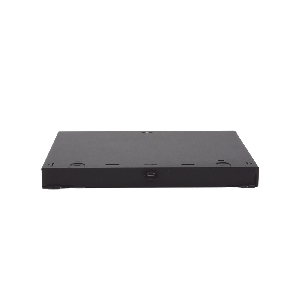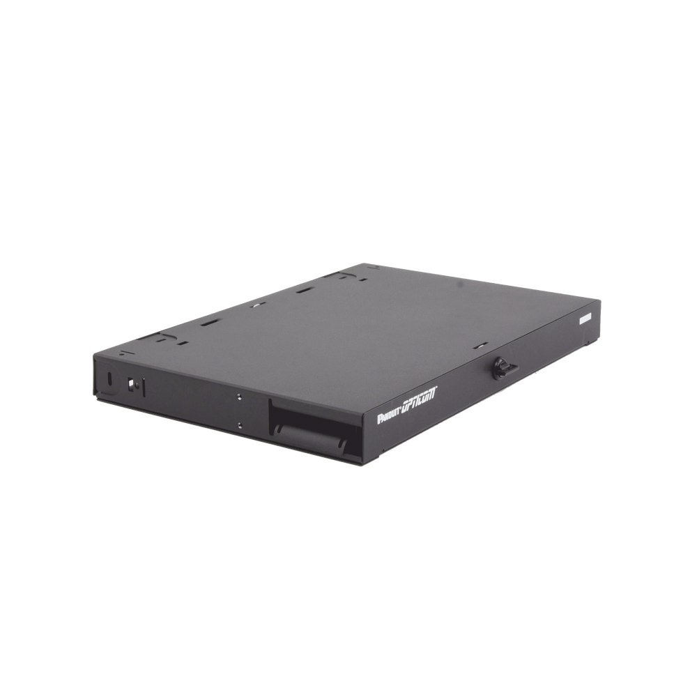 Panel de Distribución de Fibra Óptica, Acepta 3 Placas FAP o FMP, Bandeja Deslizable e Inclinable Hacia Abajo, Hasta 72 Fibras, Color Negro, 1UR