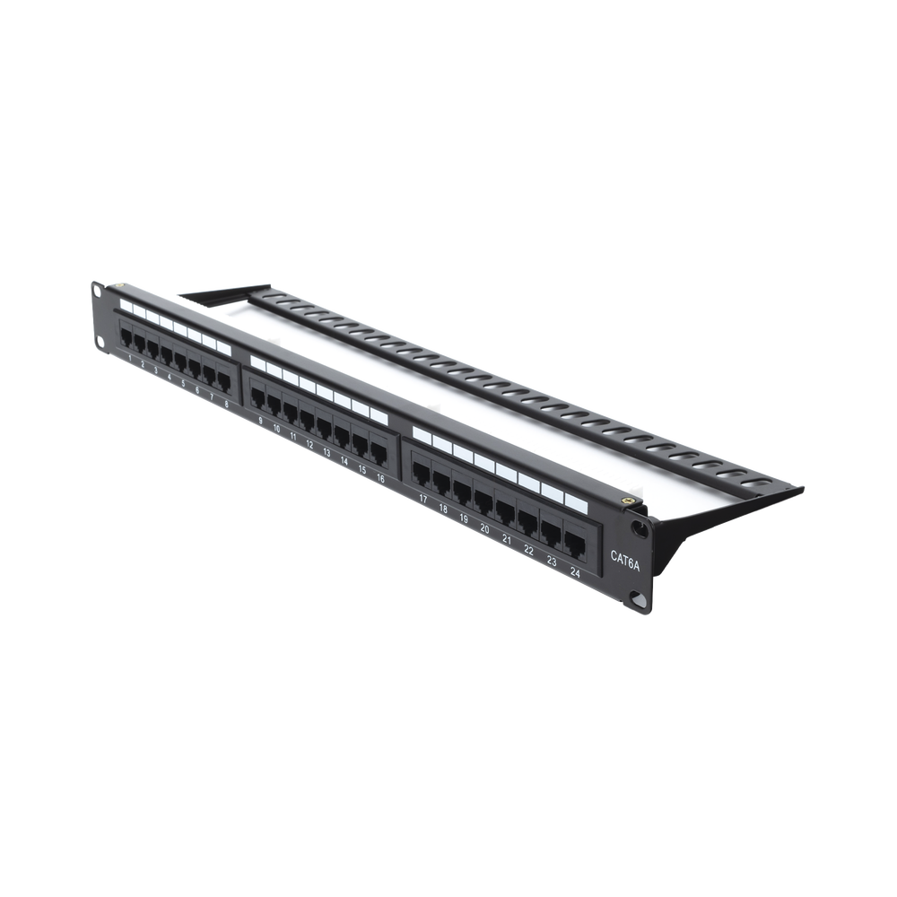 Panel de Parcheo de Impacto (110) UTP de 24 Puertos Cat6A, 19 Pulgadas (48.26 cm), con Barra para Organizar Cables y Espacio para Etiqueta
