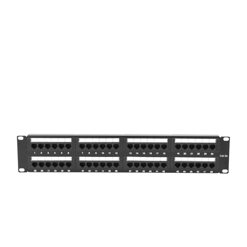 Panel de Parcheo de Impacto (110) UTP de 48 Puertos Cat5e 19 Pulgadas (48.26 cm), 2U con Barra para Organizar Cable