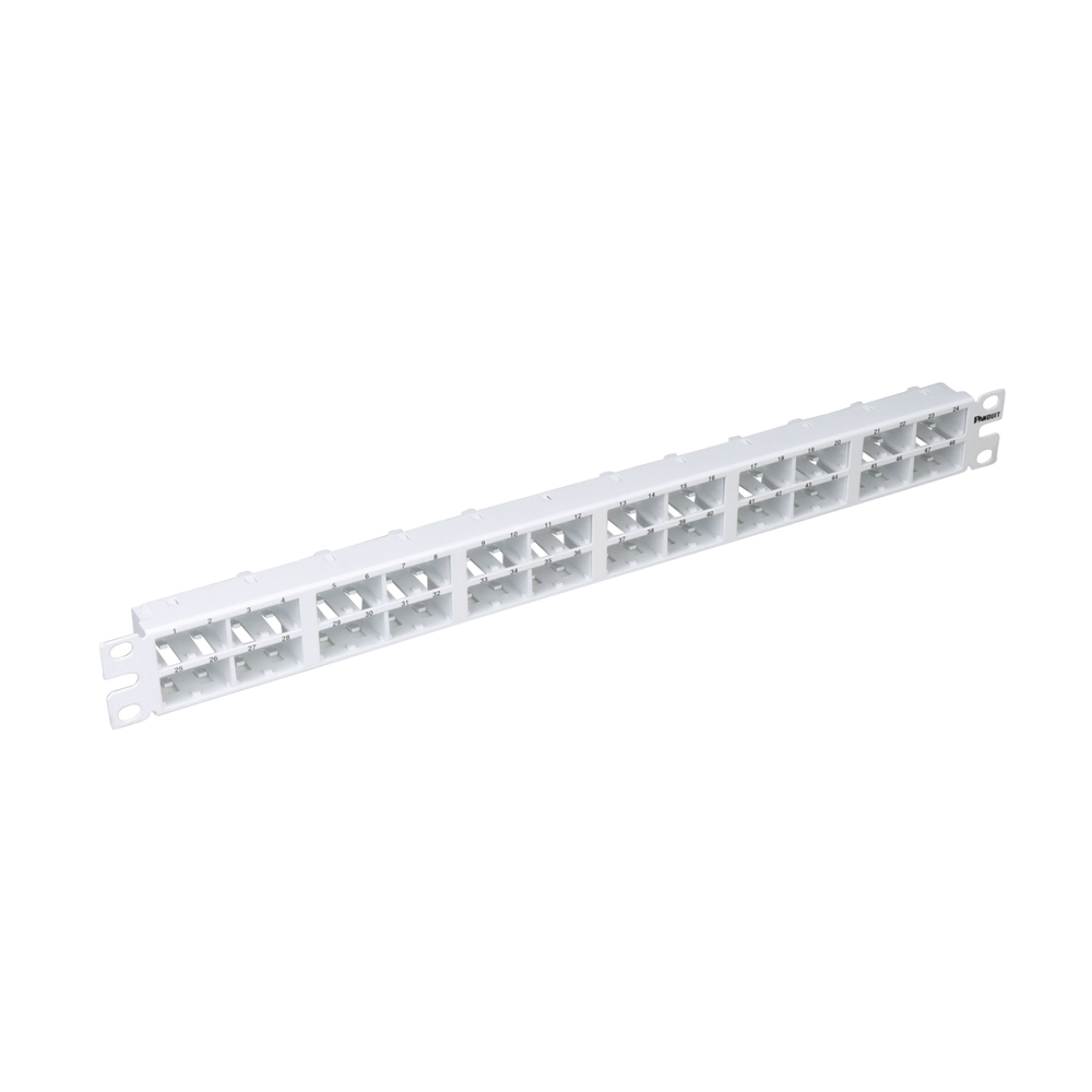 Panel de Parcheo Modular Mini-Com (Sin Conectores), Plano, Sin Blindaje, Alta Densidad, de 48 Puertos, Color Blanco, 1 UR