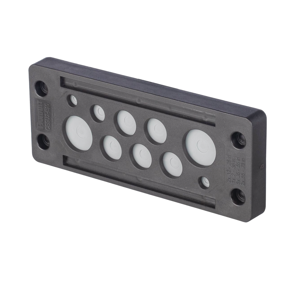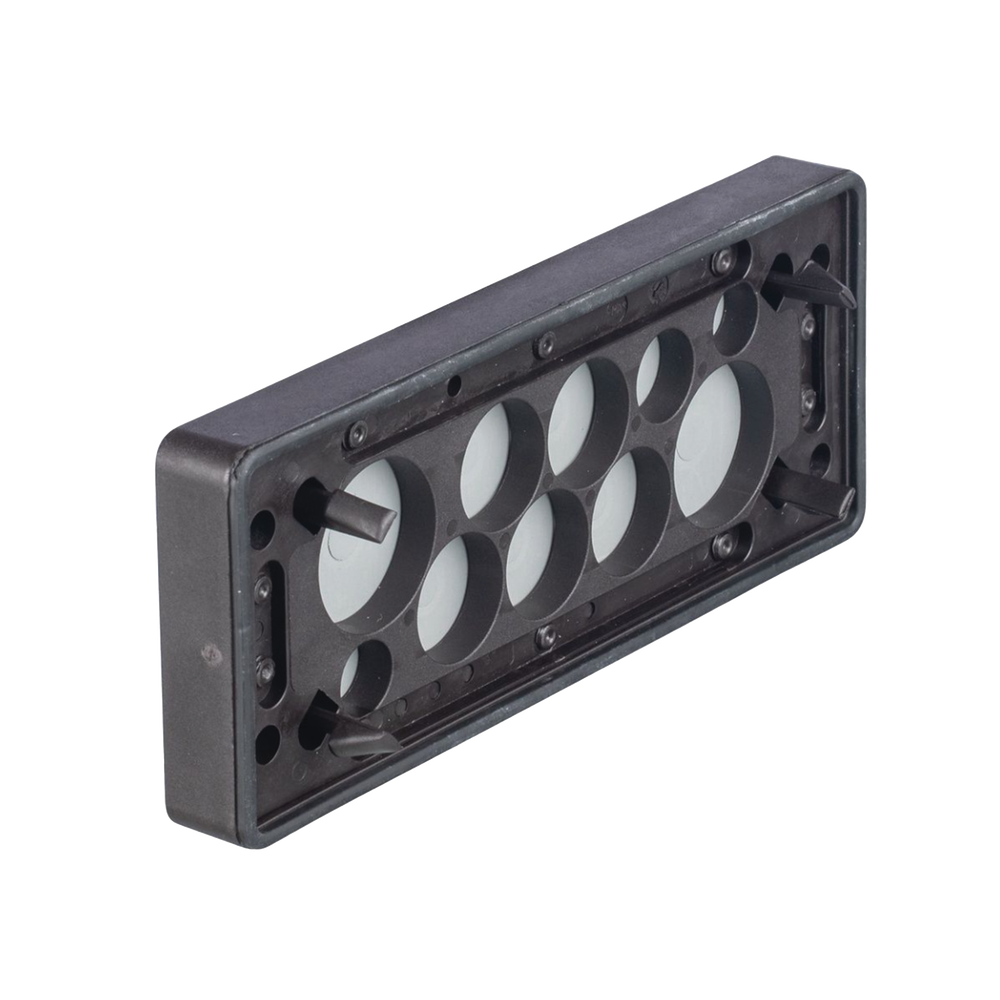 Pasacable de 10 Orificios de Marco Rectangular, IP65, 4.41″ X 1.42″, para Cables no Terminados, Color Negro.
