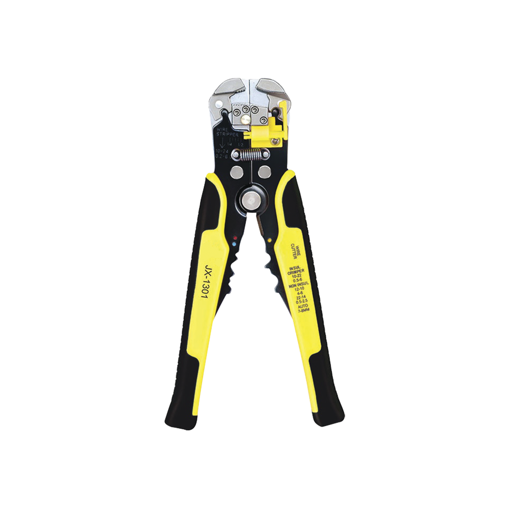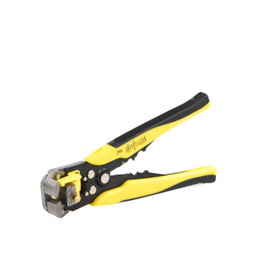 Pinza multifuncional Pelacables, con terminal de pestaña, prensado automático de color amarillo.