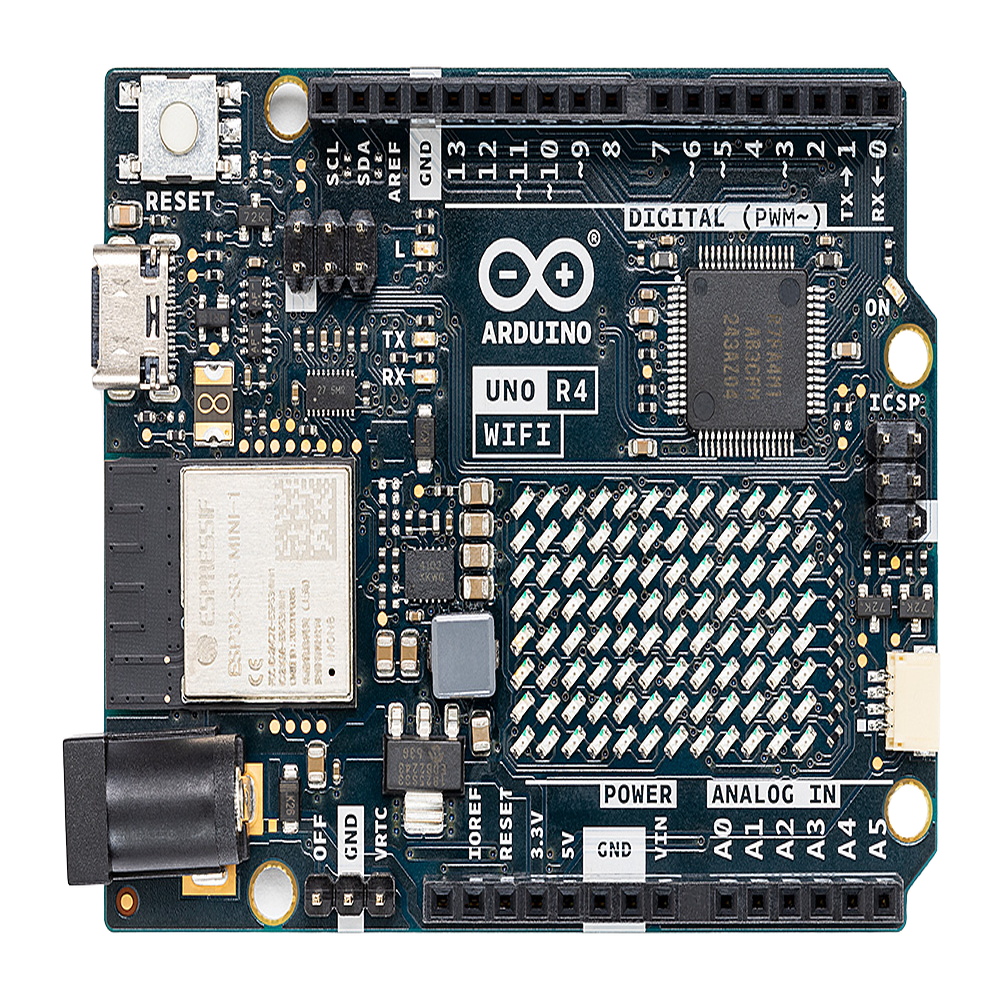 La Arduino UNO R4 WiFi representa la evolución de la serie UNO hacia arquitecturas de 32 bits, reemplazando los microcontroladores AVR de 8 bits con el potente RA4M1 de Renesas basado en Arm Cortex-M4 a 48 MHz. Esta placa mantiene la compatibilidad física y eléctrica con shields y accesorios de versiones anteriores mientras incorpora capacidades avanzadas como conectividad WiFi 4 y Bluetooth 5 mediante el módulo ESP32-S3-MINI-1-N8. Con memoria significativamente expandida (256 kB Flash, 32 kB SRAM, 8 kB EEPROM) y periféricos mejorados incluyendo DAC de 12 bits, OPAMP y matriz LED programable 12×8, está diseñada para aplicaciones IoT, educación y proyectos makers que requieren mayor potencia de procesamiento y conectividad inalámbrica integrada.