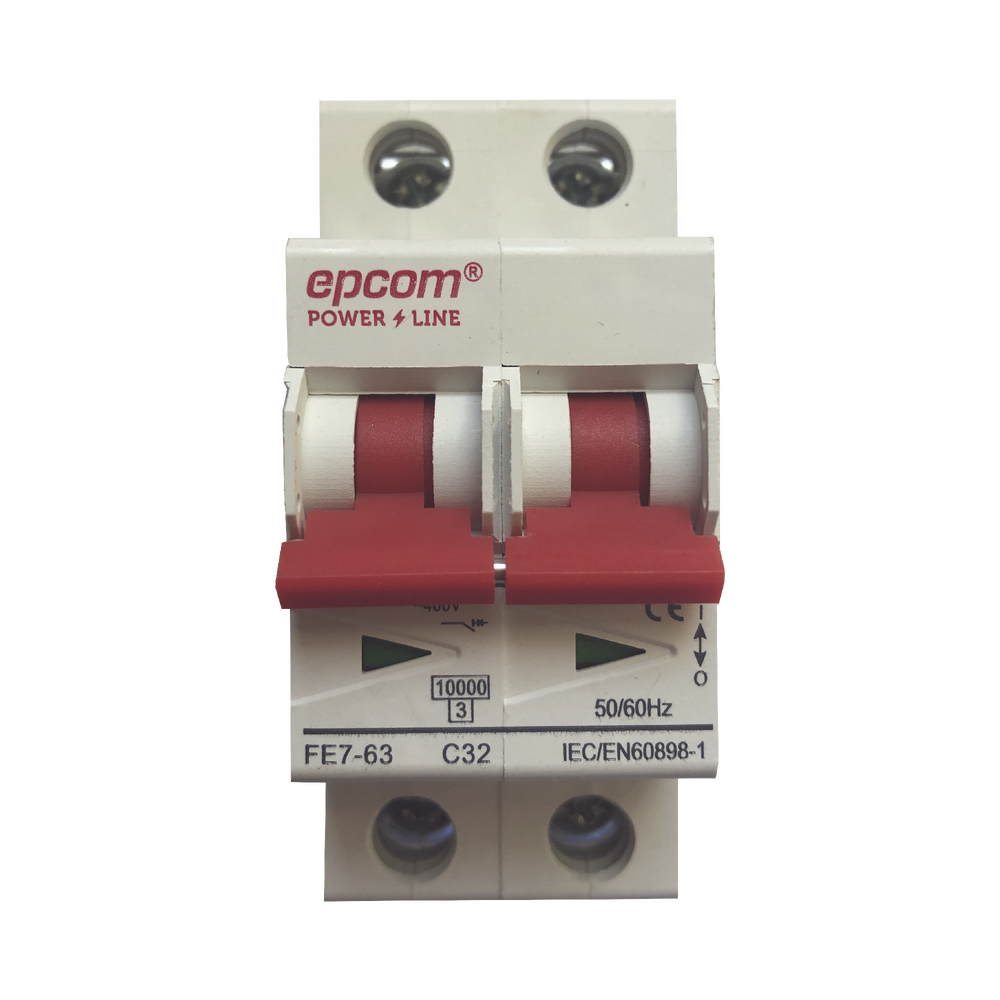 Protección Térmica/ Interruptor 2P, 32A, Corriente Alterna 400 V CA para Aplicación Fotovoltaica Montaje Riel DIN