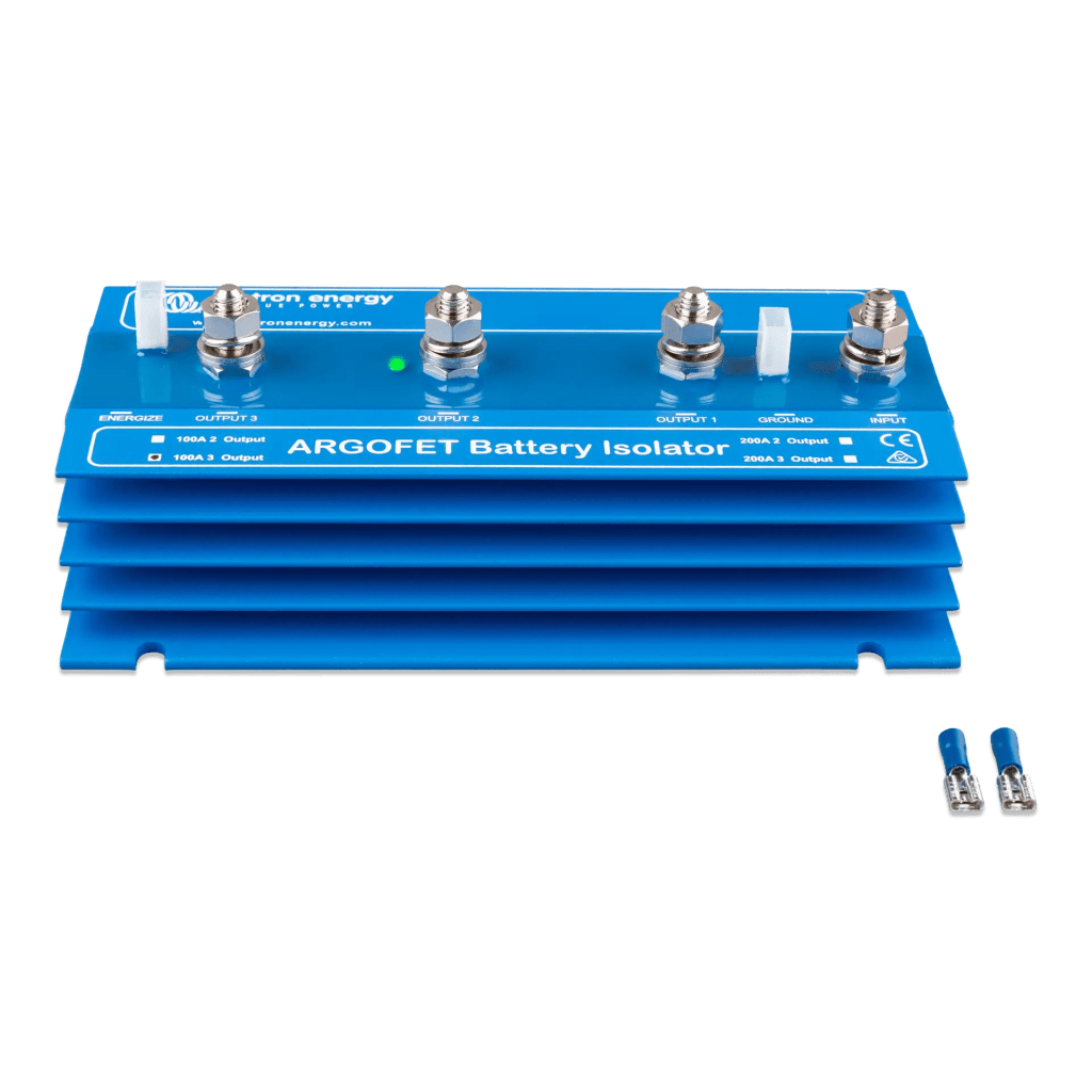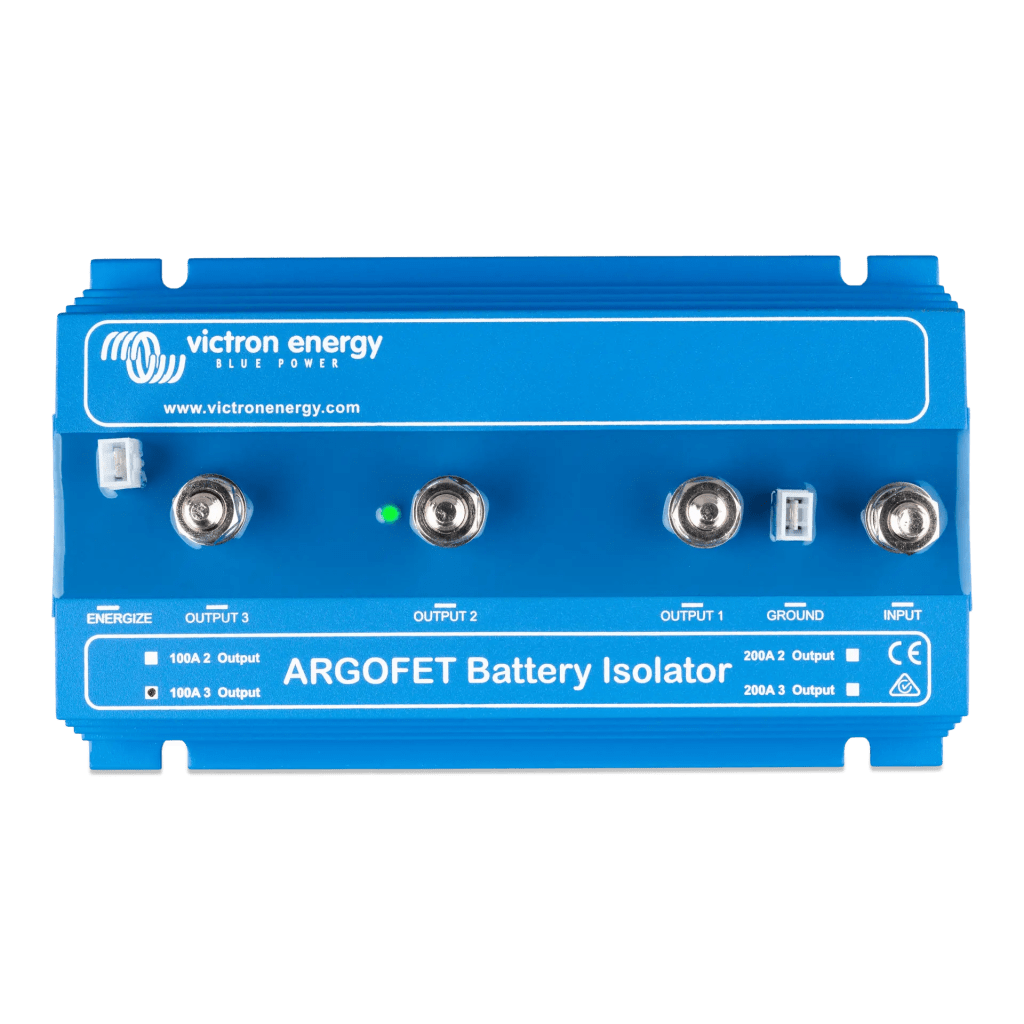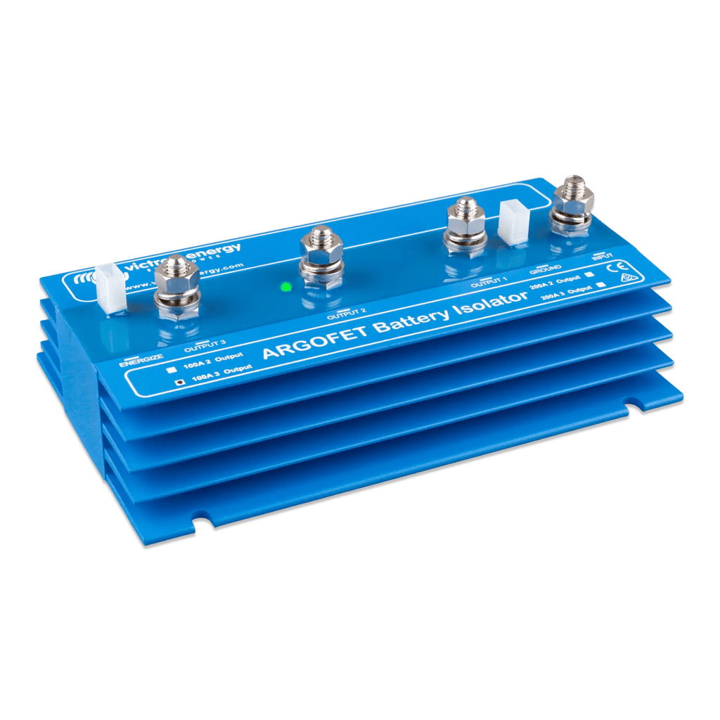 Los puentes de diodo ARGOFET de Victron Energy permiten la carga simultánea de varias baterías desde un solo alternador o cargador, sin conectarlas entre sí. Esto garantiza que la batería de servicio y la batería de arranque permanezcan aisladas, evitando descargas indeseadas y mejorando la eficiencia del sistema eléctrico.