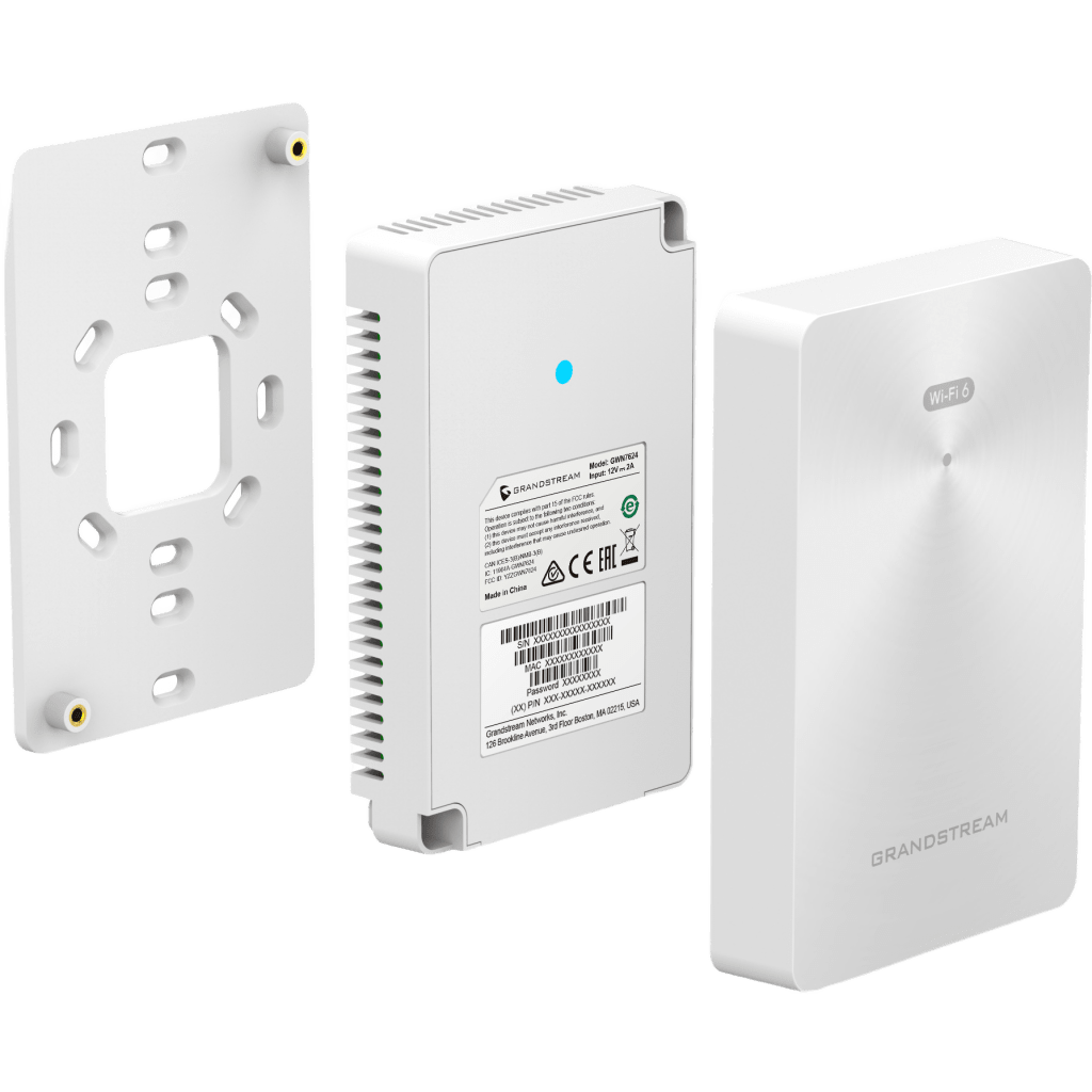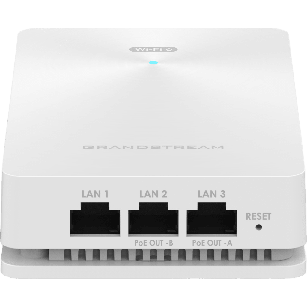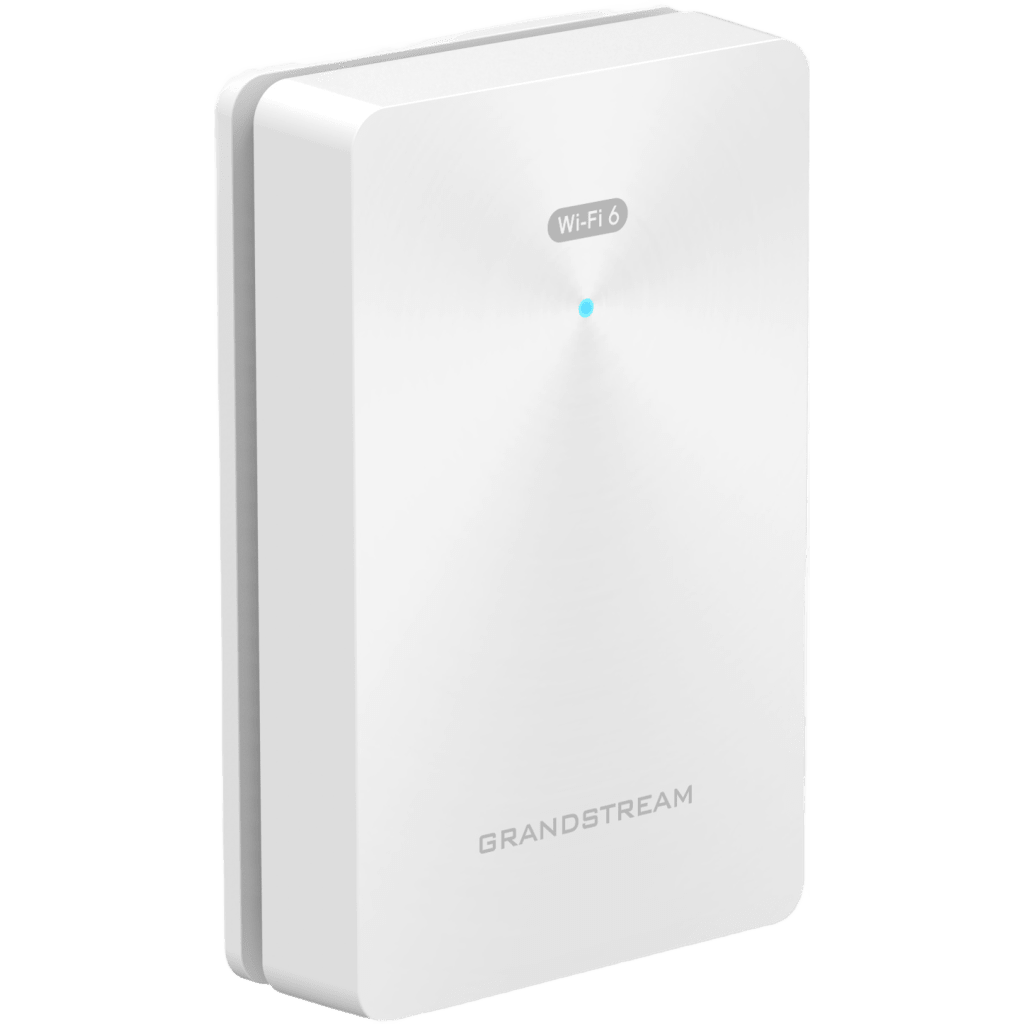 El GWN7661E es un punto de acceso Wi-Fi 6 AX3000 de pared diseñado para oficinas, hoteles, hogares, departamentos y más. Proporciona Wi-Fi 6 de doble banda, un diseño de antena sofisticado para velocidades inalámbricas de hasta 3 Gbps, rango de cobertura de 100 metros, tecnología MU-MIMO 2×2:2 (2.4G) y 3×3:2 (5G). El GWN7661E proporciona tres puertos de red Gigabit para proveer Ethernet a teléfonos IP, televisores, computadoras y dispositivos similares, y al mismo tiempo, proporciona un puerto de red Gigabit de enlace ascendente con PoE/PoE+. Este punto de acceso Wi-Fi 6 está diseñado para montarse en la pared para proporcionar una instalación limpia y profesional que se integra con el entorno circundante. Para garantizar una fácil instalación y administración, el GWN7661E incluye un controlador integrado dentro de la interfaz de usuario web del producto. El GWN7661E también puede ser administrado por GDMS y GWN Manager, las plataformas de administración de redes locales y en la nube gratuitas de Grandstream. El GWN7661E es el AP Wi-Fi ideal para implementaciones de voz sobre Wi-Fi y ofrece una conexión perfecta con los teléfonos IP con capacidad Wi-Fi de Grandstream. Con soporte para QoS avanzada, aplicaciones en tiempo real de baja latencia, redes Mesh, portales cautivos y 256 clientes simultáneos por AP, el GWN7661E es un punto de acceso Wi-Fi ideal para instalaciones empotradas en la pared e implementaciones en pequeñas y medianas empresas.