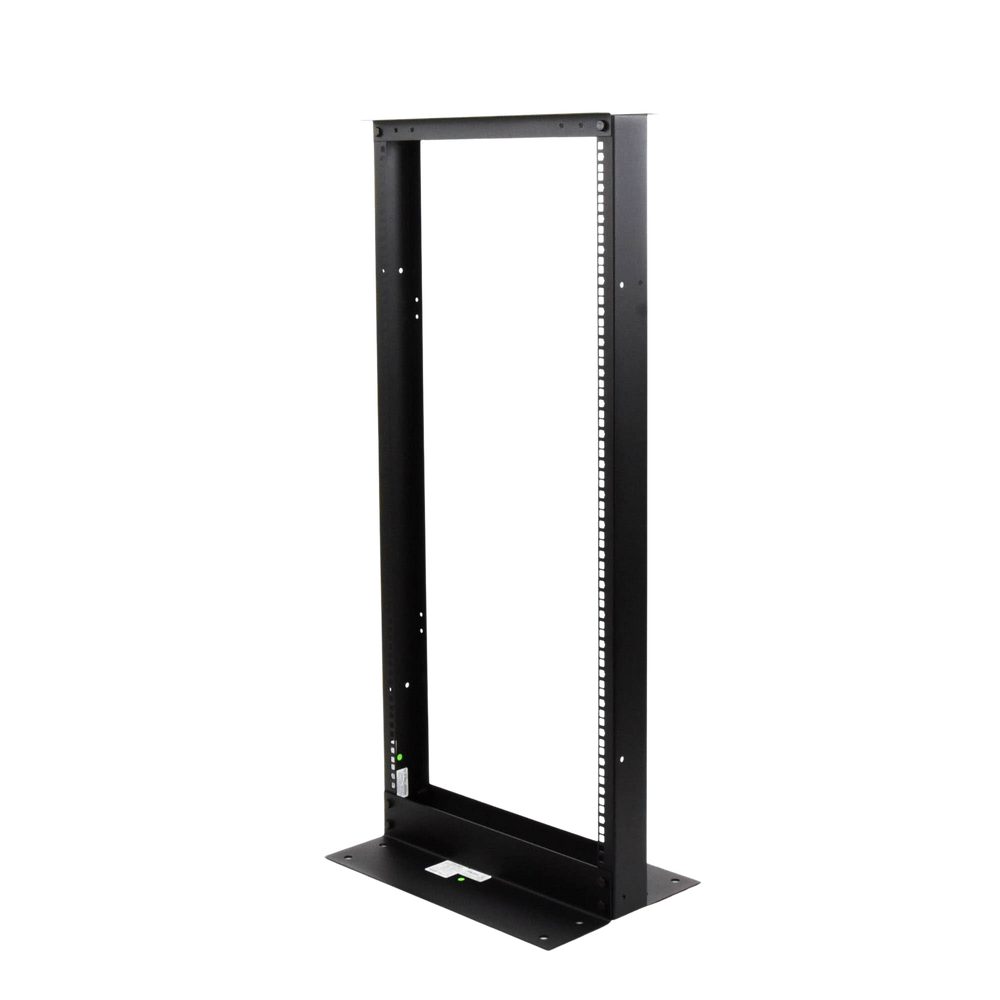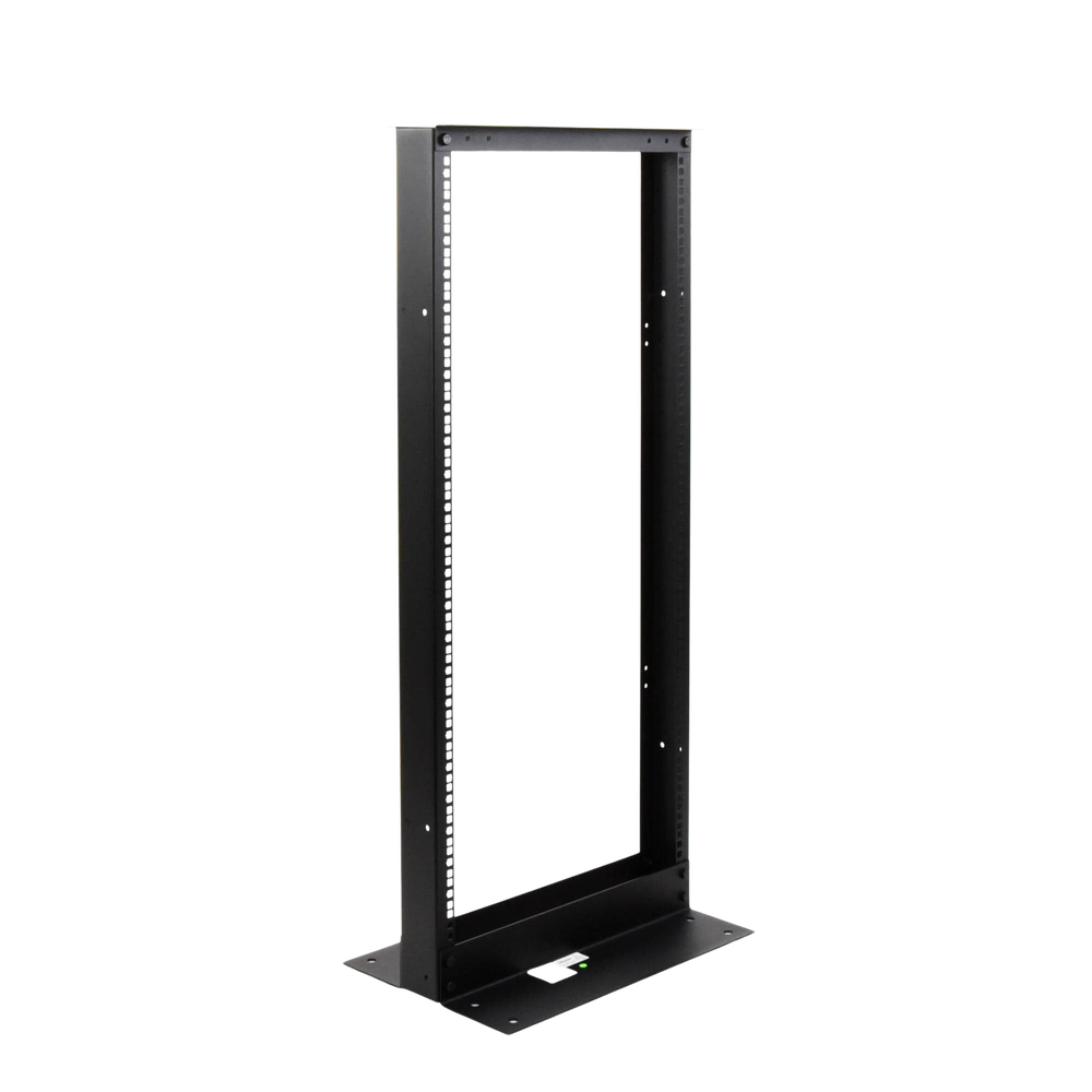 Rack de 2 Postes, Estándar 19″, 24 Unidades, Fabricado en Acero, Base “L” para Anclar a Piso.