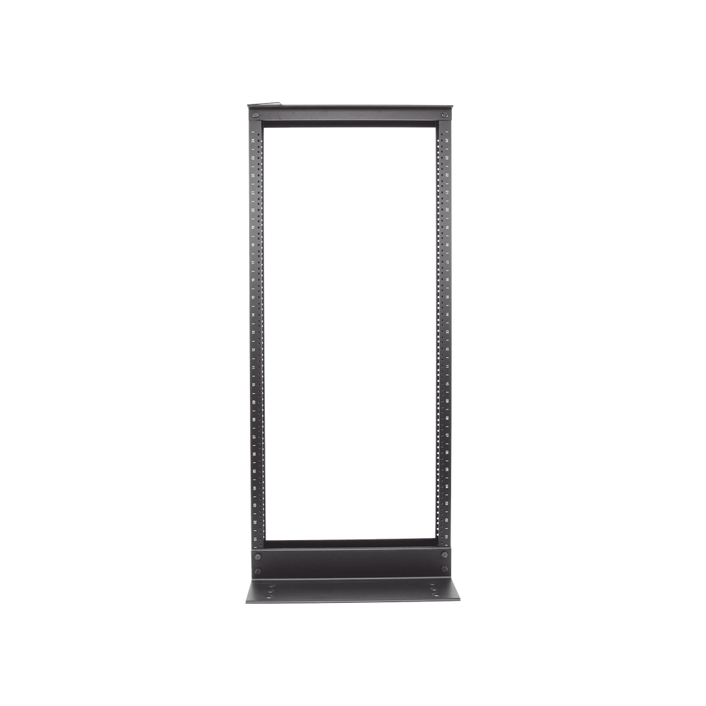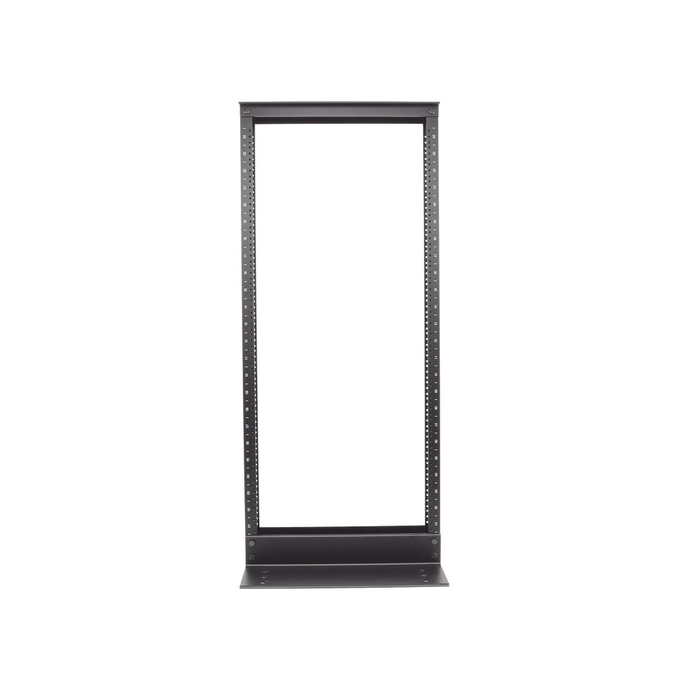 Rack de Dos Postes Estándar de 19 in, Rieles Numerados y Roscados #12-24, Fabricado en Aluminio, 24 Unidades de Rack, Color Negro
