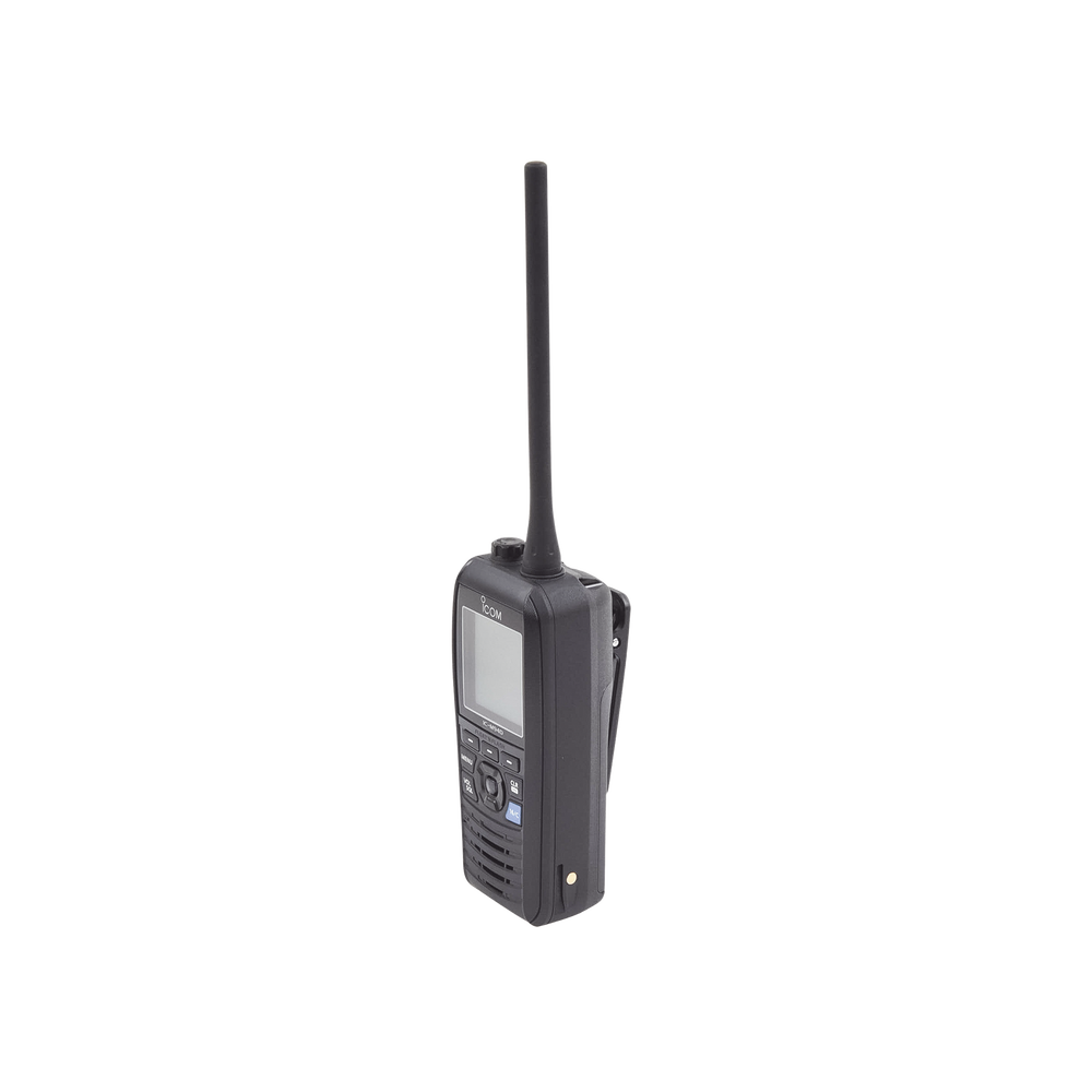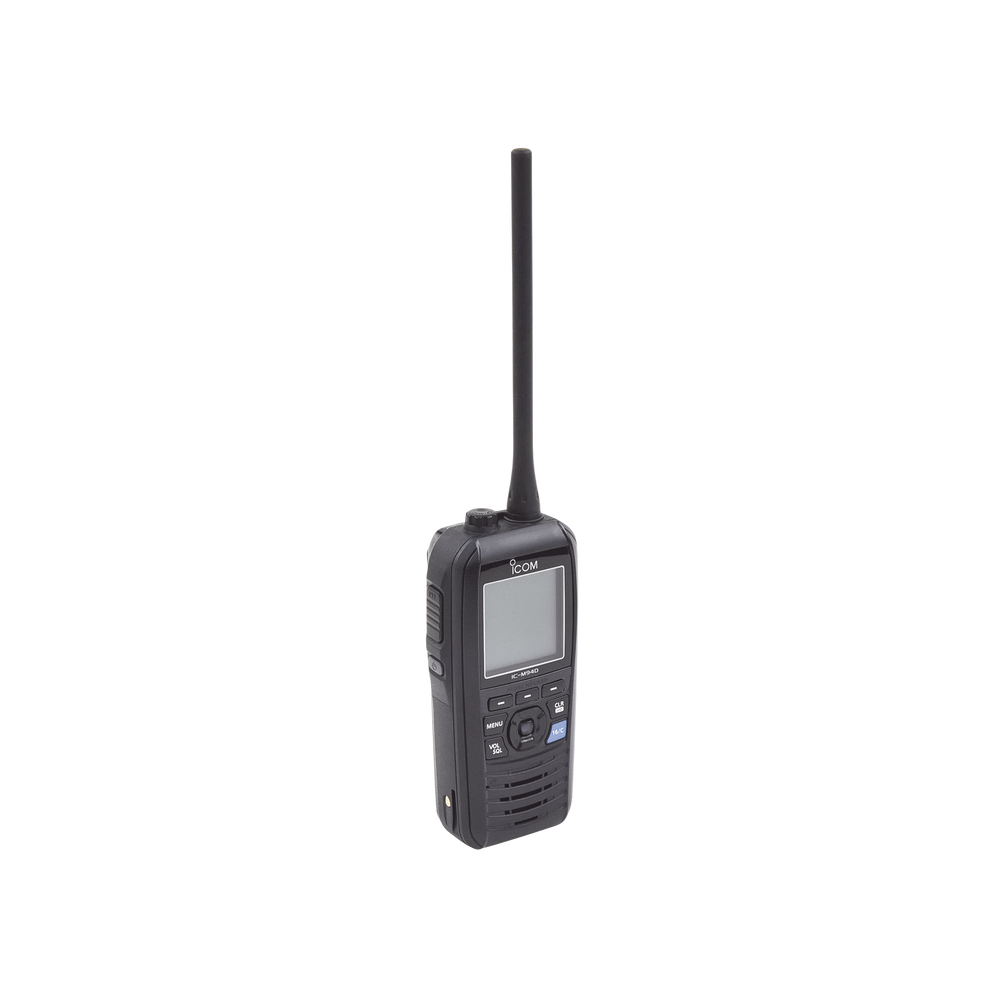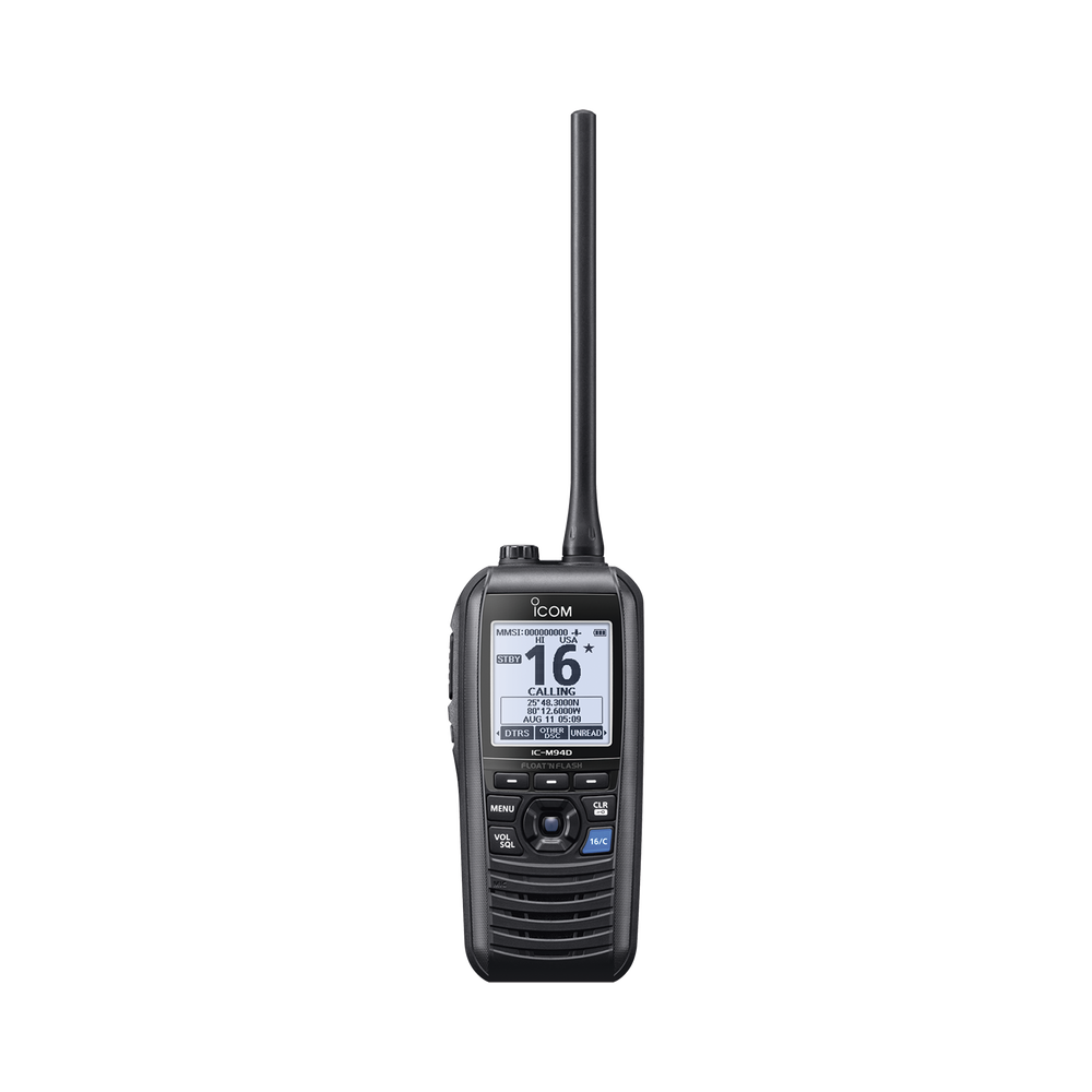 Radio portátil marino flotante con receptor AIS y GPS incluido, Tx: 156.025-157.425 MHz Rx: 156.050-163.275 MHz, opera en canales INT, USA, CAN, WX, Incluye antena, batería, cargador, cable de encendedor y clip.