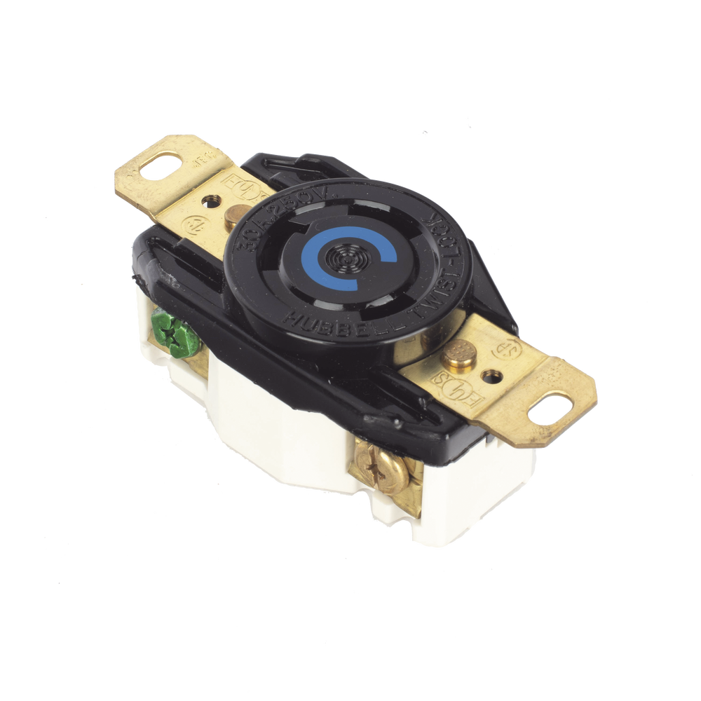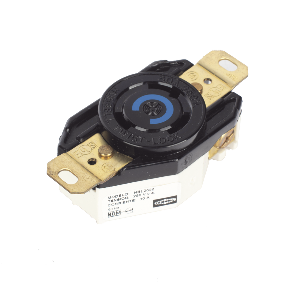 Receptáculo de Media Vuelta Industrial 30 A 250 V CA 2 Polos 3 Hilos (Nema L6-30R) Color Negro.
