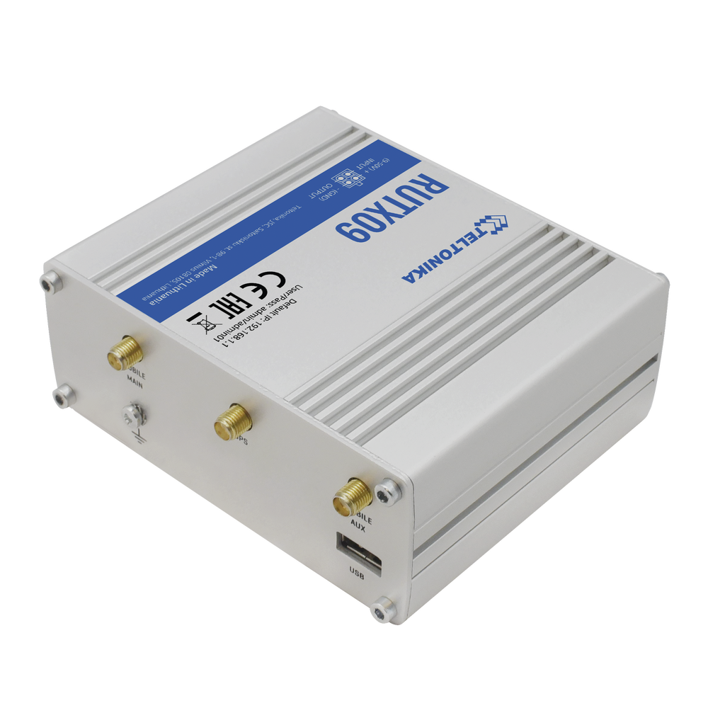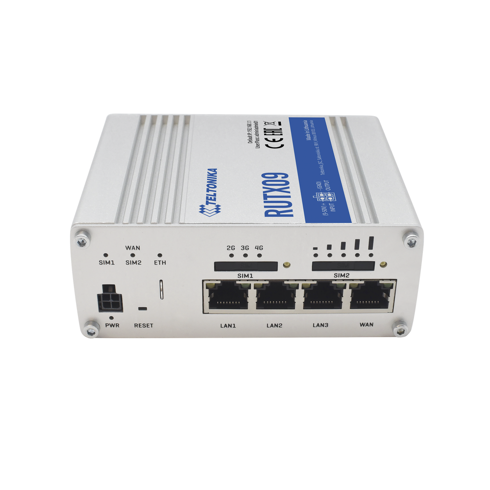 RUTX09 es un router IoT celular LTE-A Cat 6 con interfaces Dual-SIM, Carrier Aggregation y 4 Gigabit Ethernet.