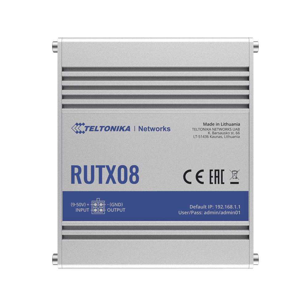 RUTX08 es un enrutador VPN industrial Ethernet a Ethernet duradero y potente que se ejecuta en RutOS, un avanzado sistema operativo basado en OpenWRT.