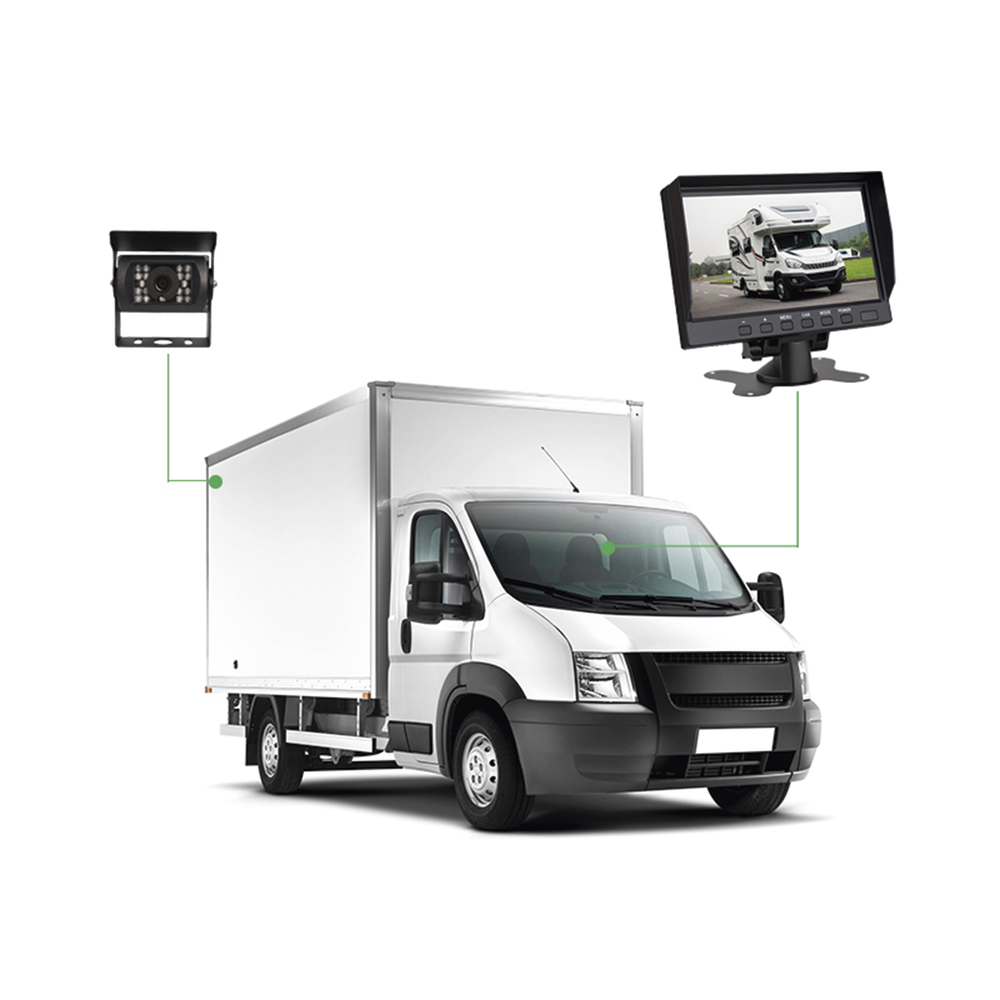 Sistema Profesional de Cámara de Reversa y Monitor Alámbrico para Vehículos de Trabajo y Montacargas