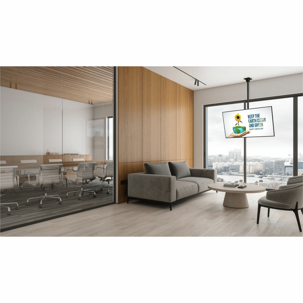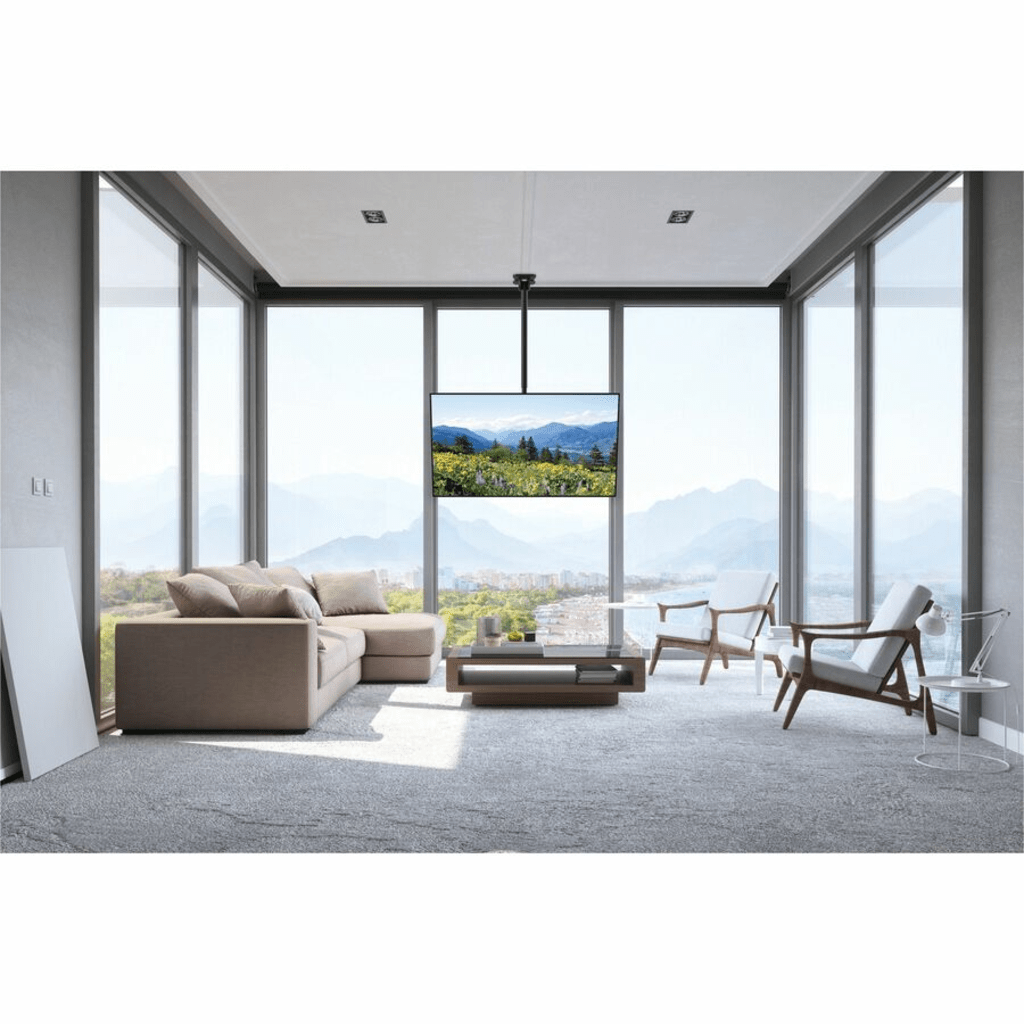 Soporte de Techo Universal Paramount PCM150 para Pantallas de 43″ a 90″+ / Capacidad de Carga 150 lb (68 kg) / Ajuste Vertical 39.59″ a 63.21″ / Rotación 360° / Inclinación +20°/-5° / Montaje en Techos Planos