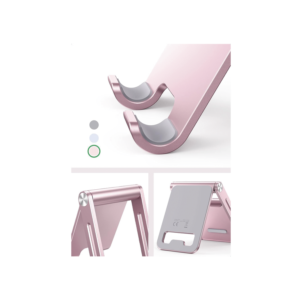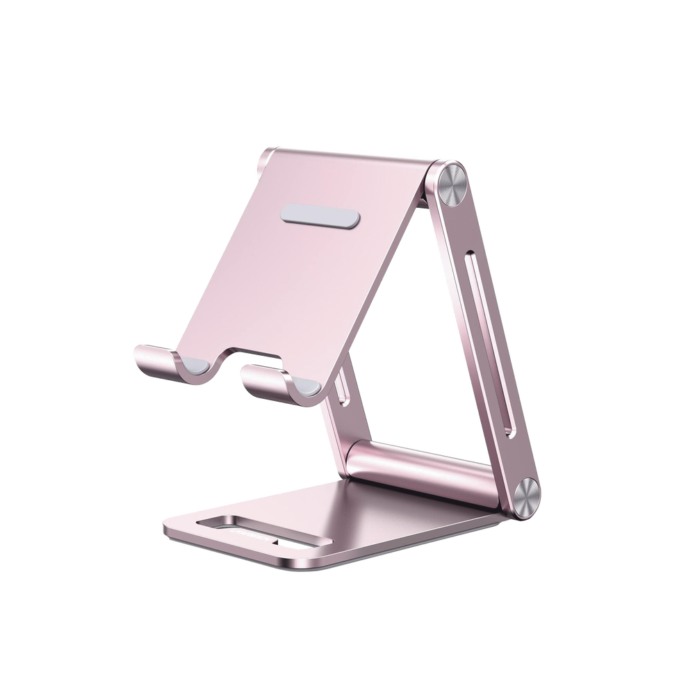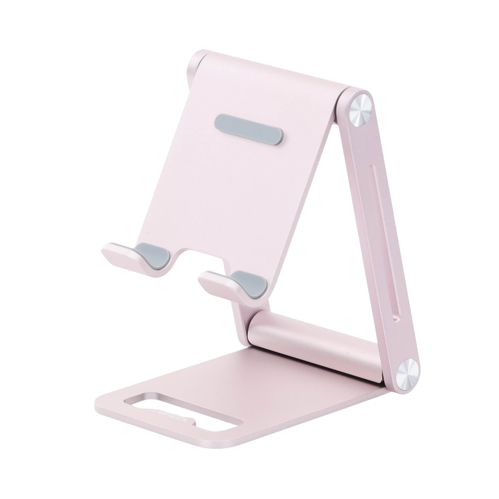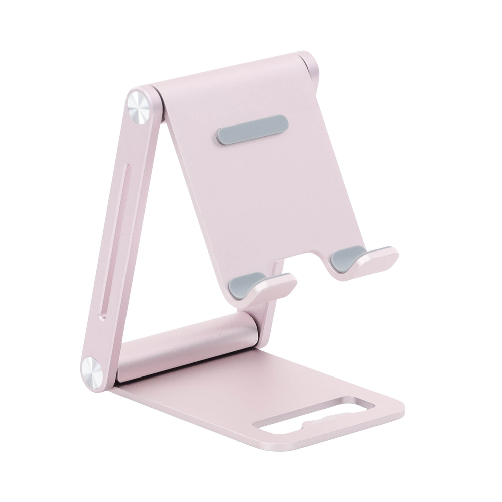 Soporte para Teléfono Celular de Aluminio / Angulo Ajustable / Amplia Compatibilidad con dispositivos de 4.7” a 7.9” / Antideslizante / Antiarañazos / Plegable / Color Rosa