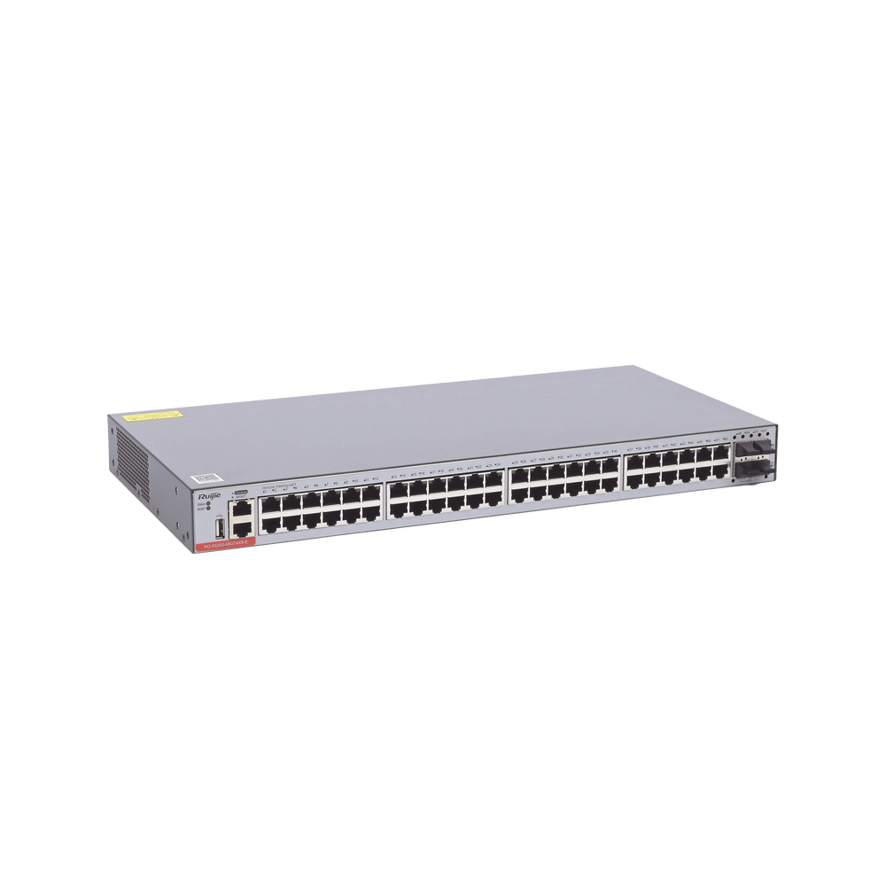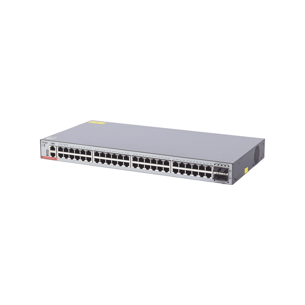 Switch Administrable Capa 3 con 48 puertos Gigabit + 4 SFP+ para fibra 10Gb, gestión gratuita desde la nube.