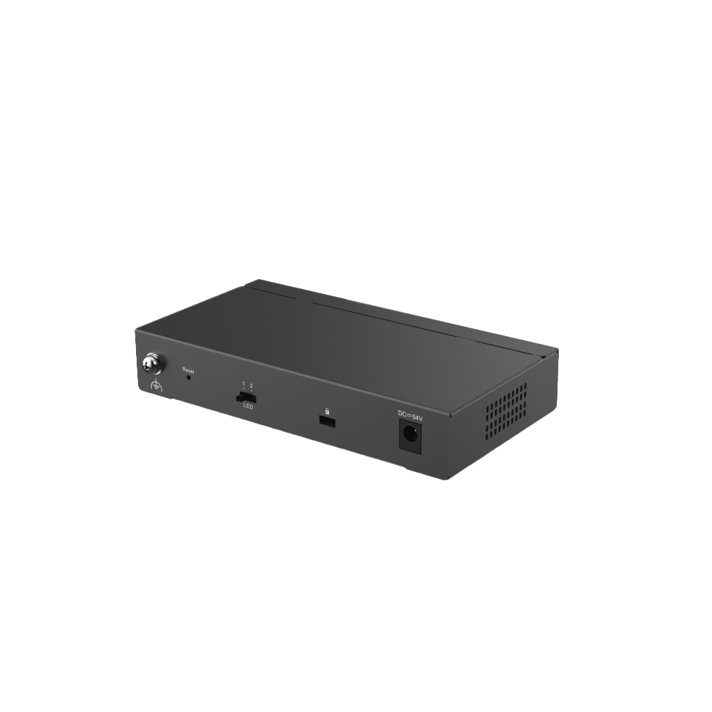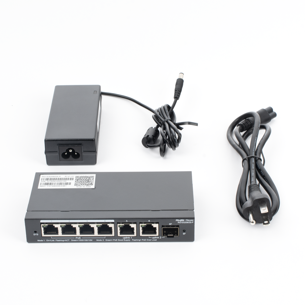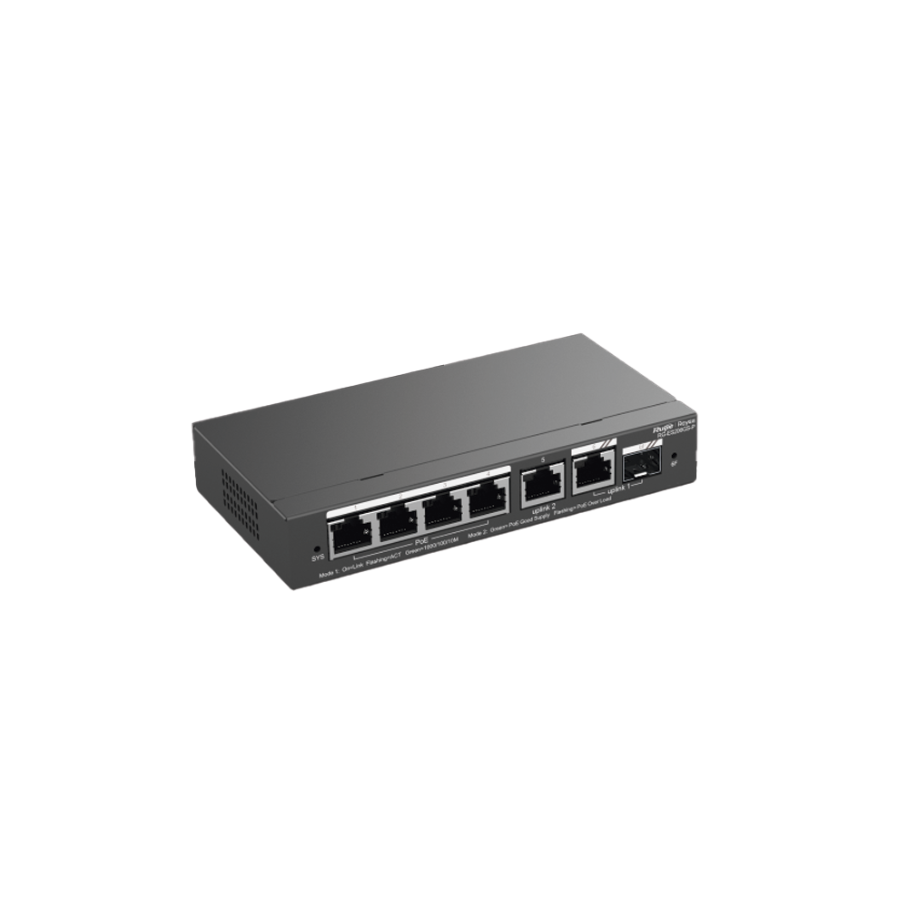 Switch Administrable con 4 puertos Gigabit PoE, 2 Uplink Gigabit y 1 Uplink Gigabit para Fibra SFP en combo, gestión gratuita desde la nube