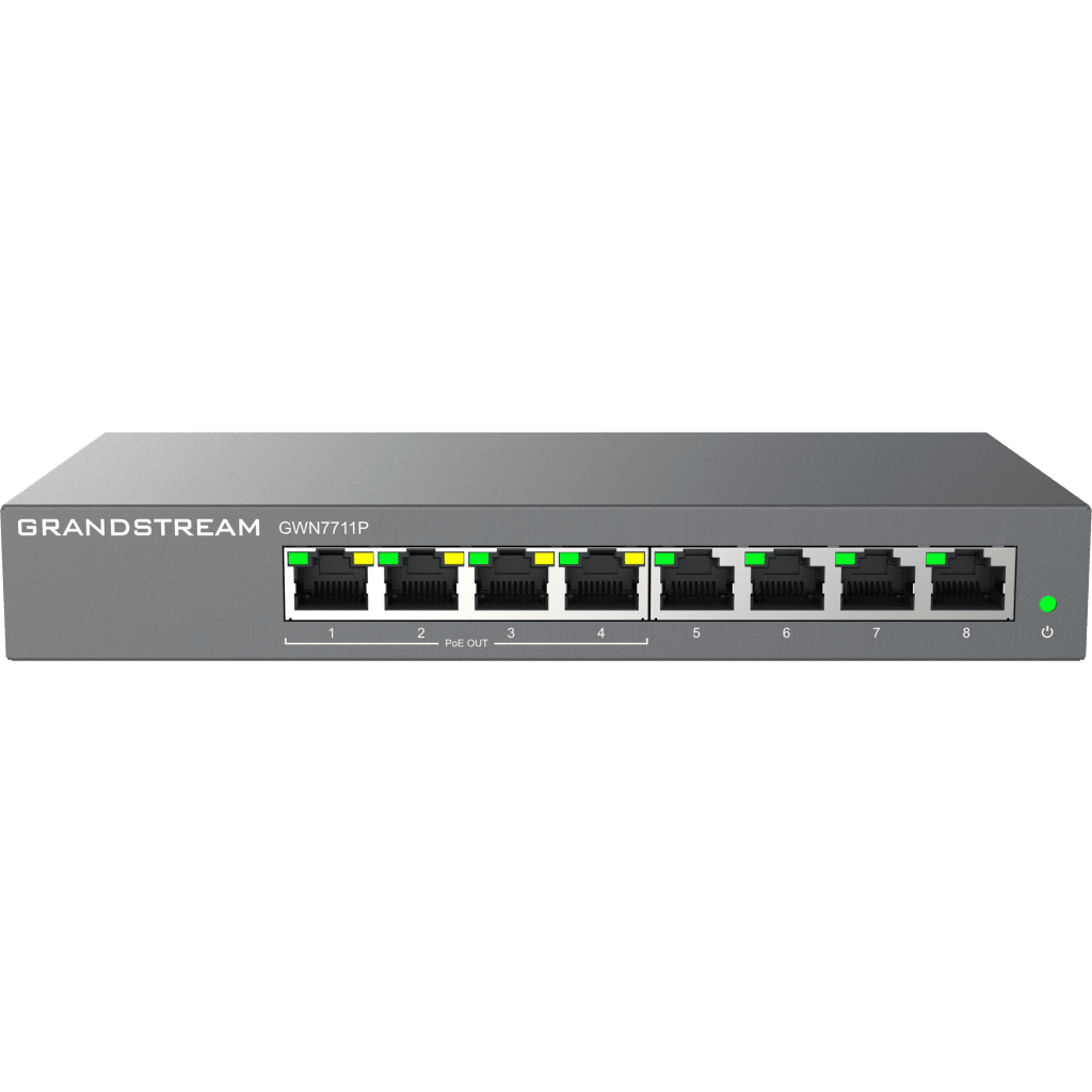 La serie GWN7711(P) son switches de red administrables de capa 2 Lite diseñados para pequeñas y medianas empresas, permitiendo la creación de redes comerciales escalables, seguras e inteligentes. Estos switches son fáciles de usar y administrar desde la nube, ofreciendo VLANs para segmentación de tráfico, QoS para priorización de tráfico, snooping IGMP para optimización de rendimiento y capacidades de seguridad integrales. El modelo GWN7711P incluye 4 puertos PoE para alimentar dispositivos como teléfonos IP, cámaras IP y puntos de acceso Wi-Fi.