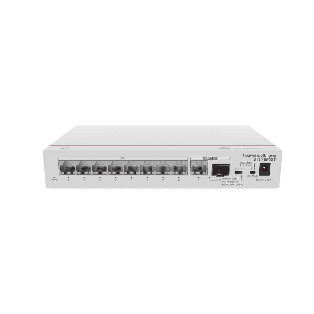 Los switches de la serie eKitEngine S110 de Huawei (abreviado S110) son switches no gestionados. Toda la serie adopta un diseño de apariencia cristalina totalmente nuevo con grandes impactos visuales, ganando por sí mismo el premio alemán Red Dot Design Award 2022. Las nuevas combinaciones de colores Silk White y Silver Frost son cada vez más populares. Además, el icónico logotipo de Huawei en los switches de la serie eKitEngine S110 les da un aspecto más refrescante. Por lo tanto, los Switches eKitEngine serie S110 pueden utilizarse ampliamente en escenarios de acceso, como empresas SOHO, y en entornos de oficinas remotas.