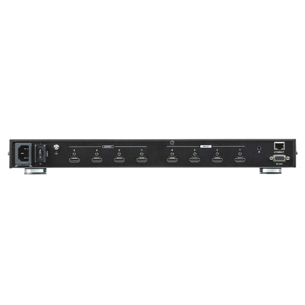 El VM0404HB de ATEN es un switch de matriz HDMI 4K real que ofrece una manera sencilla y asequible de redireccionar cualquiera de las 4 fuentes de vídeo HDMI a alguna de las 4 pantallas HDMI. Con resoluciones de vídeo excelentes de hasta 4096 x 2160 a 60 Hz (4:4:4), el VM0404HB ofrece una redirección de señal sólida y conmutación de vídeo digital extremadamente rápida, lo que lo convierte en la solución perfecta para aplicaciones en las que es necesaria la redirección de señales digitales 4K reales, tales como recintos para eventos, aulas digitales, auditorios, grandes almacenes y otros entornos.
