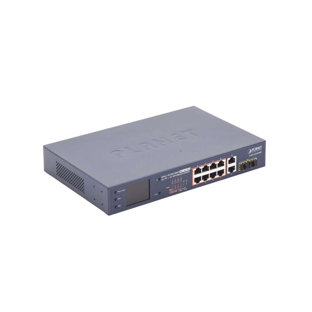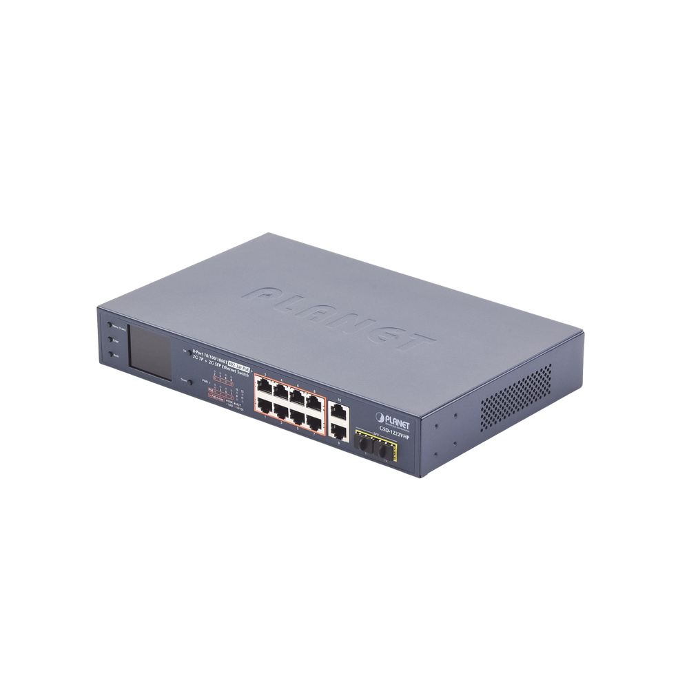 PLANET GSD-1222VHP es una solución Power over Ethernet ideal Plug and Watch que proporciona una instalación rápida, monitoreo de estado de trabajo PoE en tiempo real y solución de problemas inmediata a través de su pantalla LCD única para mejorar la eficiencia y calidad del trabajo sin necesidad de PC o software.