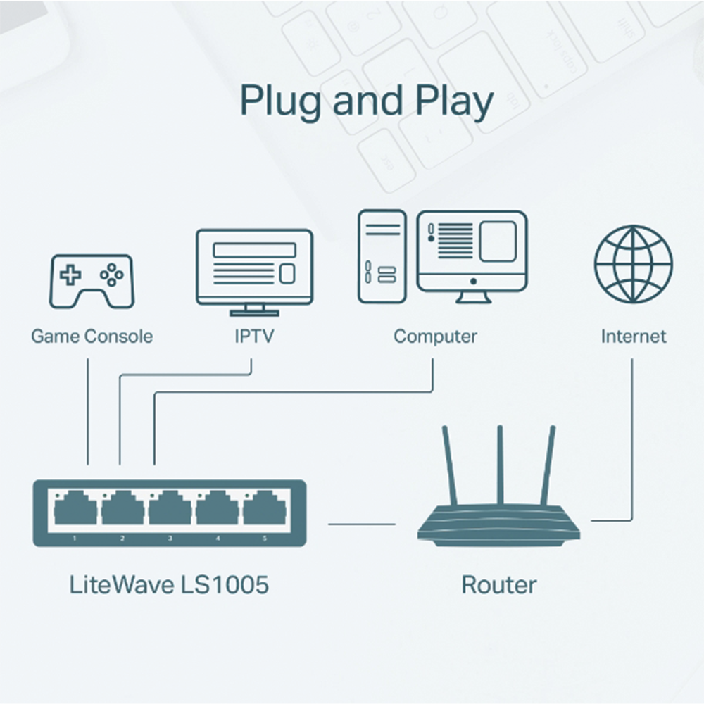 Los conmutadores no administrados de la serie TP-Link LiteWave proporcionan una forma fácil y económica de expandir tu red cableada. Son fáciles de usar y confiables. Con estos conmutadores plug-and-play, puedes expandir tus conexiones de red a múltiples dispositivos al instante. Con todos los puertos compatibles con Auto-MDI/MDIX, no hay necesidad de preocuparse por el tipo de cable a utilizar.