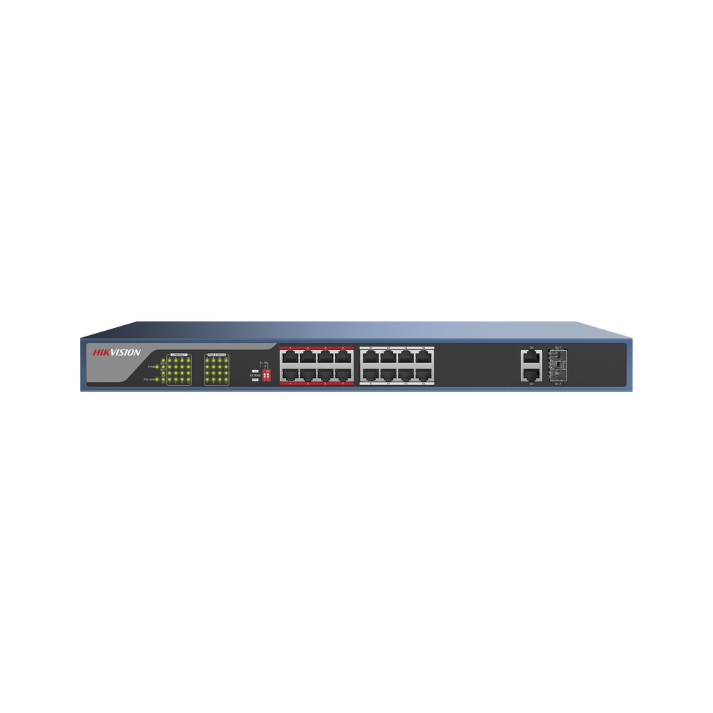 Switch PoE 250 Metros Larga Distancia / 16 Puertos 802.3at (30 W) 100 Mbps + 2 Puertos Gigabit + 2 Puertos SFP