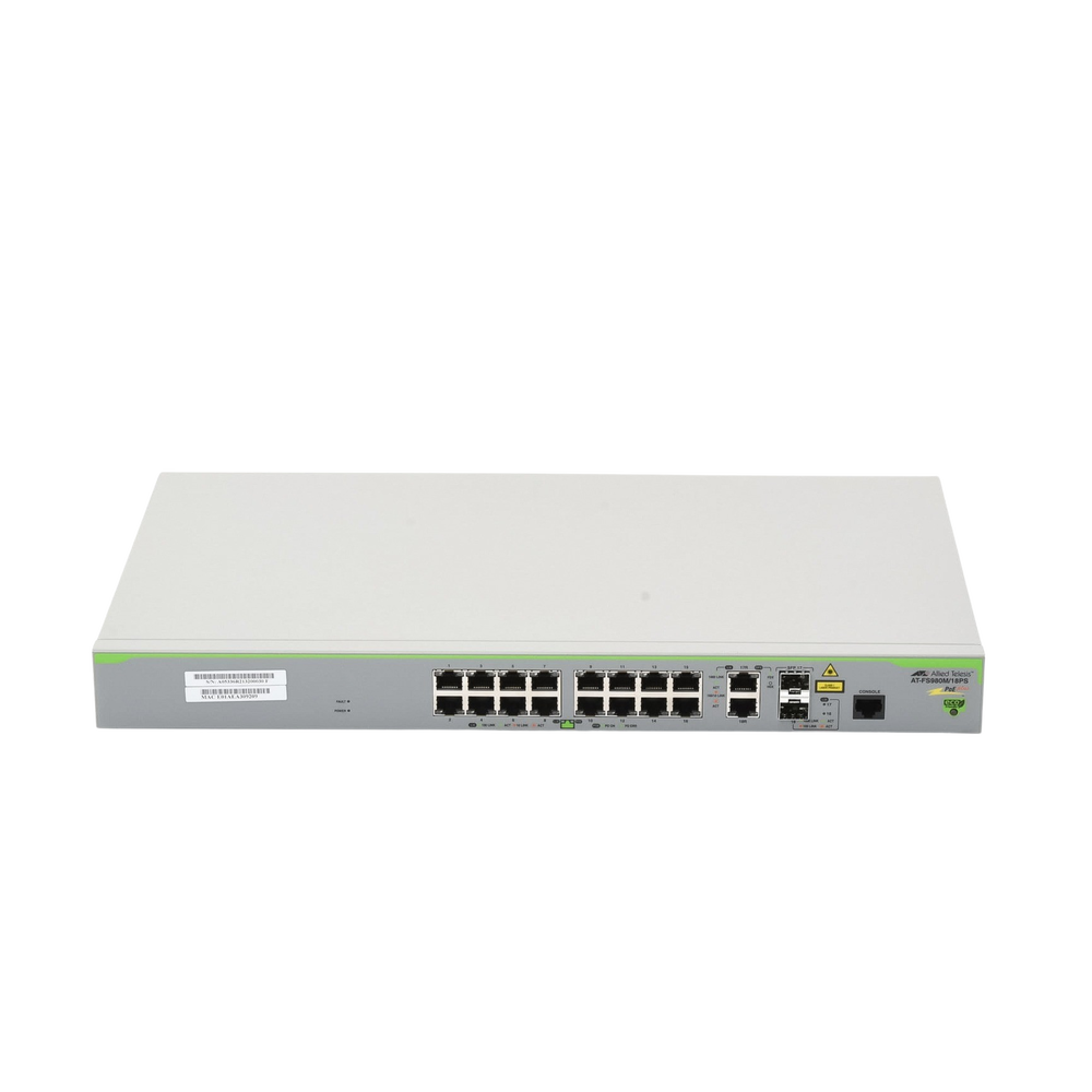 Switch PoE+ Administrable CentreCOM FS980M, Capa 3 de 16 Puertos 10/100 Mbps + 2 puertos RJ45 Gigabit/SFP Combo, 250W