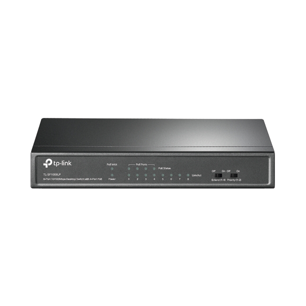 Switch PoE No Administrable de Escritorio / 8 puertos 10/100 Mbps / 4 puertos PoE af / Presupuesto 41 W / Modo extensor PoE hasta 250 metros / Calidad video prioritaria