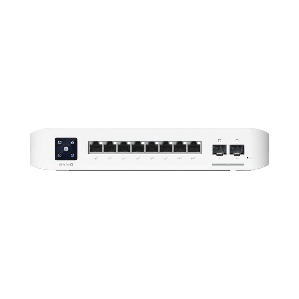 Switch UniFi Pro 8 PoE Administrable Capa 3, 8 puertos GbE / (6) puertos POE+ af/at y (2) puertos POE++ 802.3bt / (2) puertos SFP+ 10G / 120W de presupuesto POE