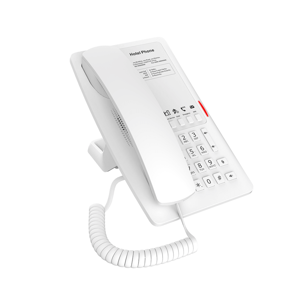 El Fanvil H4WB es un teléfono IP de uso hotelero con conectividad Wi-Fi 6 dual-band (2.4GHz / 5GHz), diseñado para ofrecer una experiencia de comunicación moderna, eficiente y sin cables. Su elegante diseño incluye 5 teclas programables para servicios de habitación, PoE integrado, puerto USB para carga, y compatibilidad con plataformas VoIP populares. Ideal para hoteles, hospitales, centros comerciales y más.
