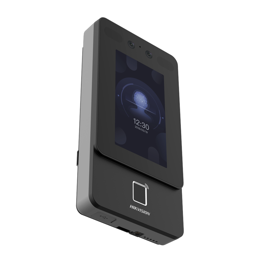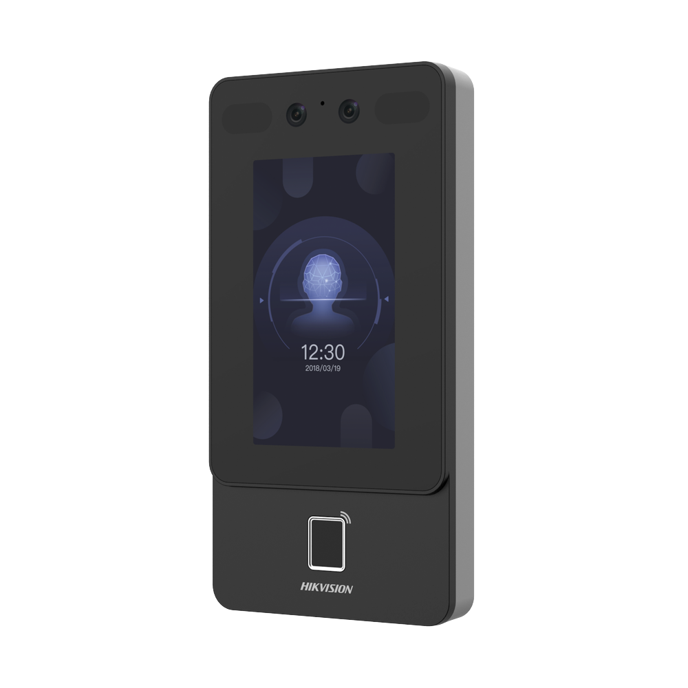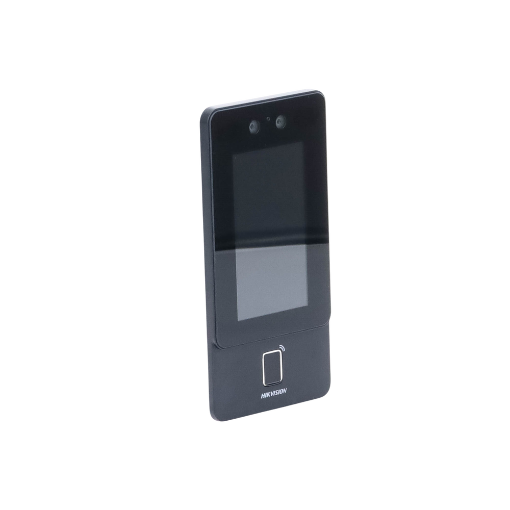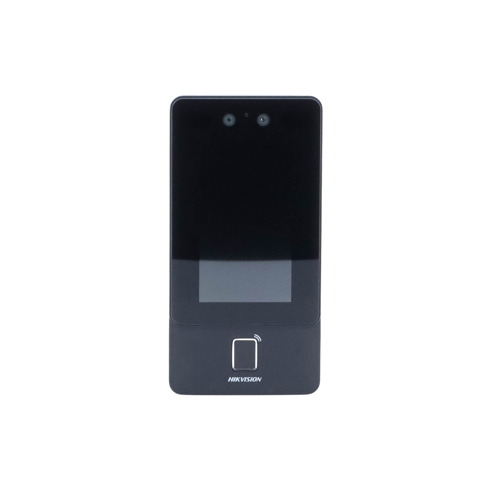 Terminal Min Moe PoE & WiFi de Reconocimiento Facial y Huella con Lector MIFARE / Exterior IP65 / Hasta 1.5 mts en Lectura de Rostro / Soporta P2P / 1,500 Rostros / 3,000 Huellas / Salida 12 Vcd para Chapa / PoE / SIP Estandar / HIK-IA