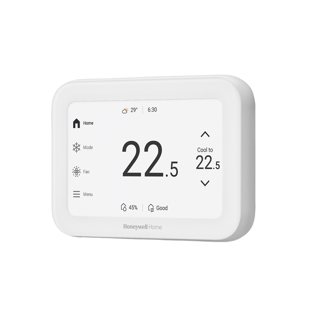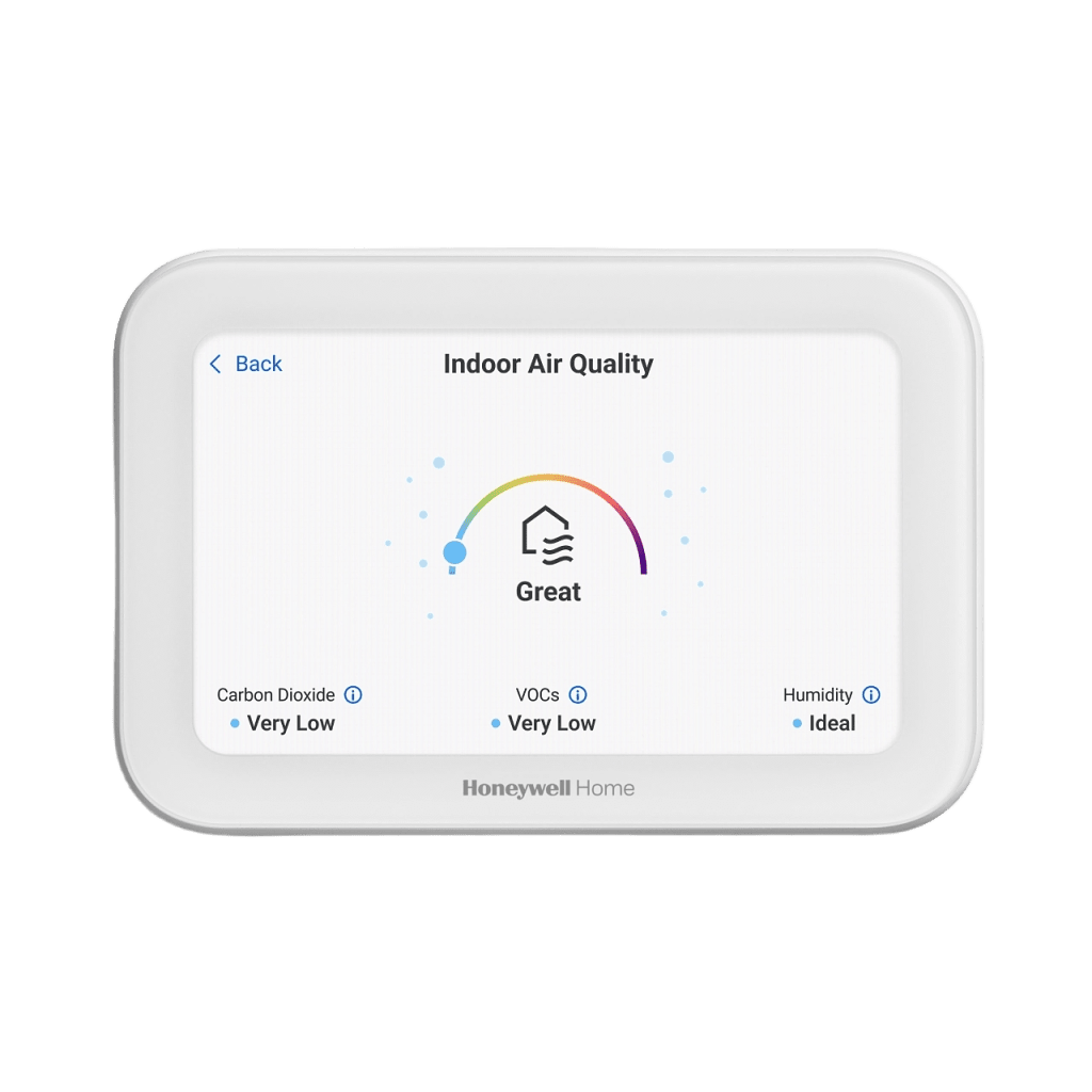 El termostato inteligente ElitePRO S1200 es un dispositivo profesional diseñado para instaladores HVAC, con una pantalla táctil de 5 pulgadas (12.7 cm) y capacidades avanzadas de control de calidad del aire interior (IAQ). Compatible con sistemas de bomba de calor de hasta 4 etapas de calefacción y 2 etapas de refrigeración, o sistemas convencionales de 3H/3C. Incluye sensores de humedad, VOC y CO2 estimado para monitoreo integral del ambiente. Con conectividad Redlink™, WiFi, Bluetooth® y Matter para integración con ecosistemas smart home. Certificado ENERGY STAR® para eficiencia energética.