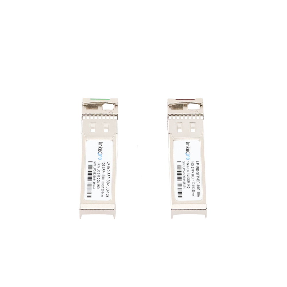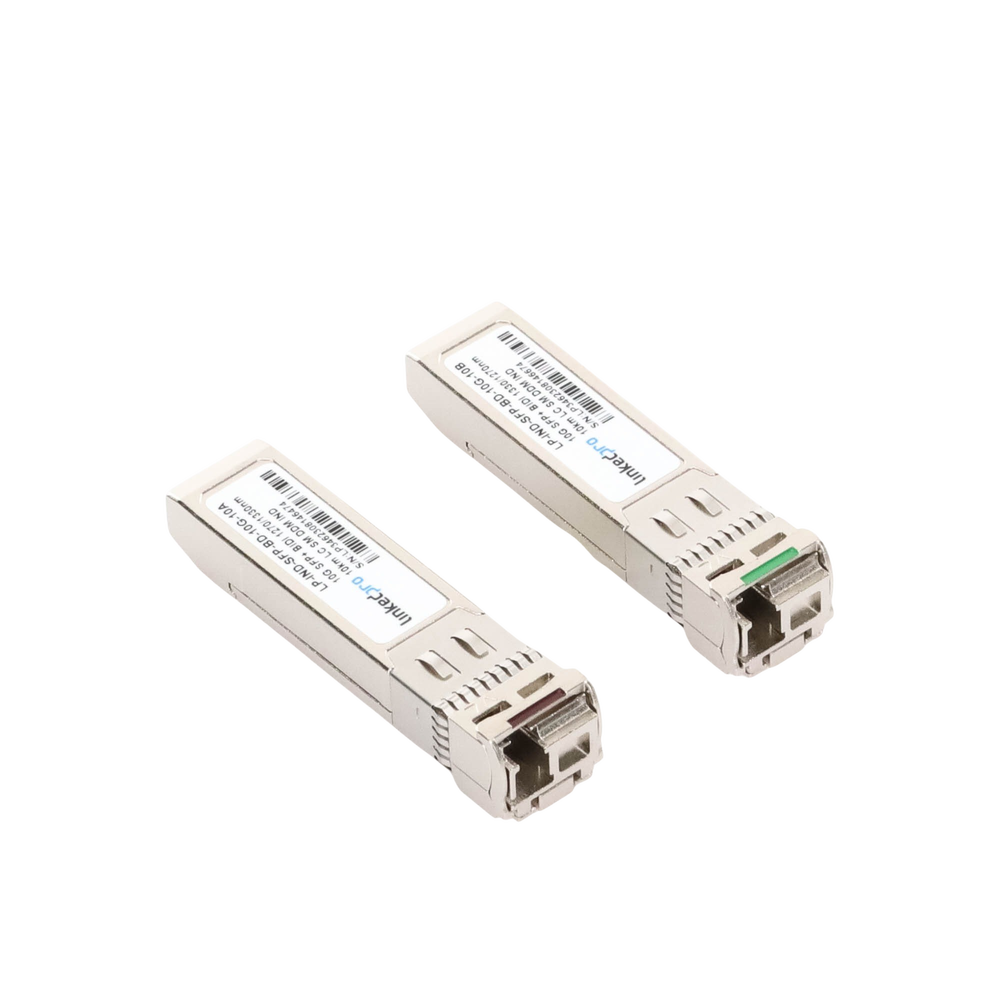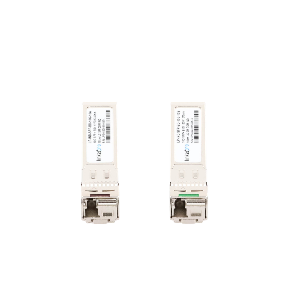 Transceptores Ópticos Industriales Bidireccionales SFP+ (Mini-Gbic) / Monomodo 1270 & 1330 nm / 10 Gbps / 10GBASE / Conector LC/UPC Simplex / DDM / Hasta 10 km / 2 Piezas