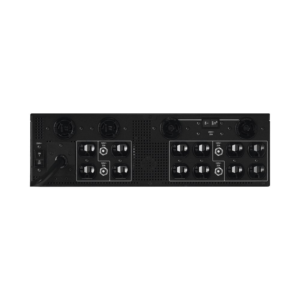 El OL8K10KRT3UTF tiene la capacidad de 5,000 watts. Incluye 12 tomas NEMA 5-20R que puede soportar salida compatible con clavijas NEMA 5-20P o 5-15P. En adición, también cuenta con 2 tomas NEMA L6-20R y 2 tomas NEMA L6-30R para energizar equipo adicional a 208 Vca.