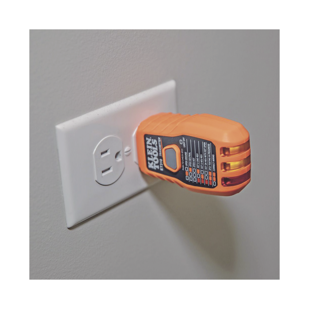 - El transmisor es una pieza de repuesto para el detector de cortacircuitos con un probador de tomacorrientes GFCI integrado
