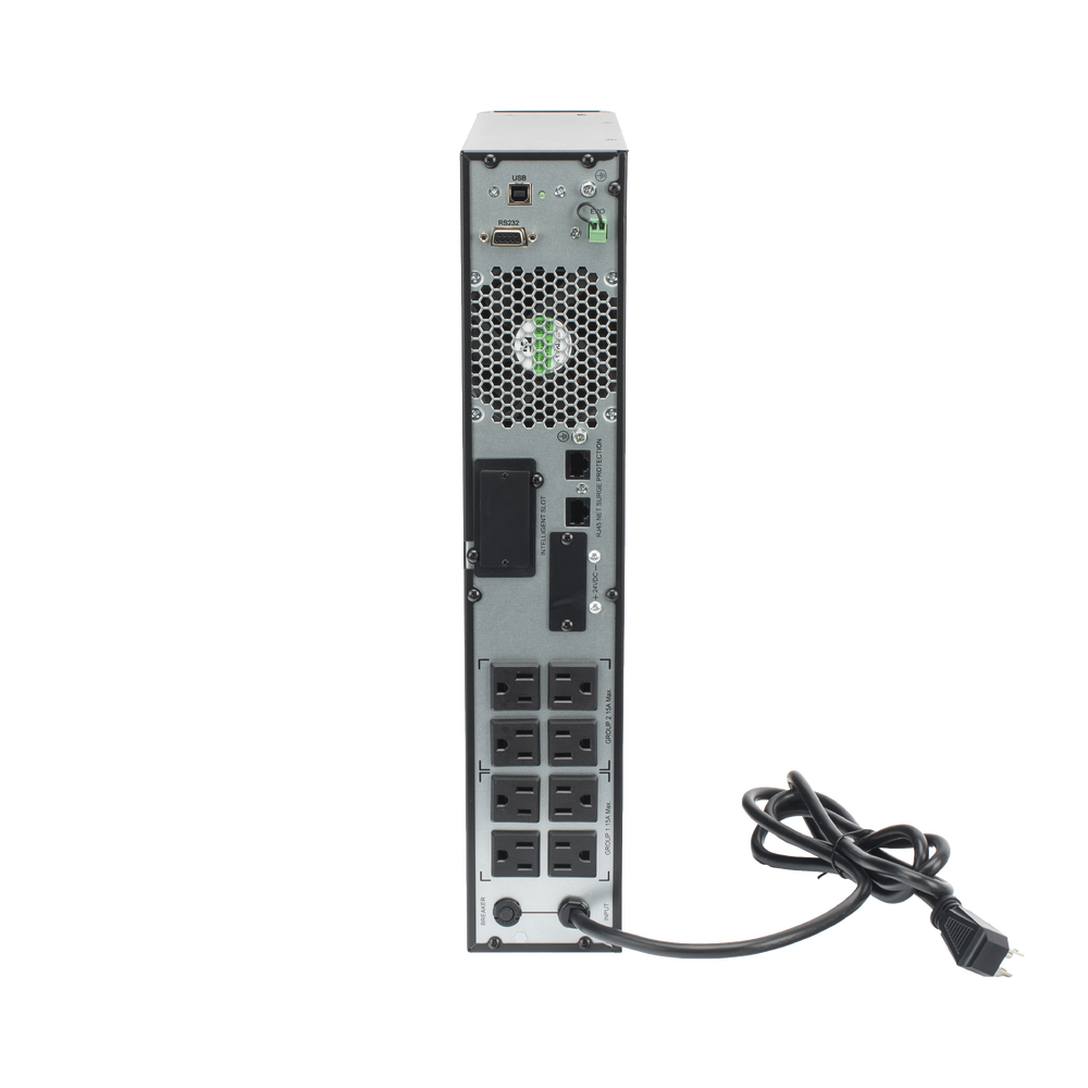 Está equipado con corrección de factor de potencia (PFC) en la entrada, factor de potencia de 0.9 en la salida, ofreciendo altos niveles de confiabilidad y protección para sistemas IT, equipo de telecomunicaciones, equipo médico y sistemas de misión crítica. Es convertible a Rack o Torre y solo toma 2U unidades de Rack.