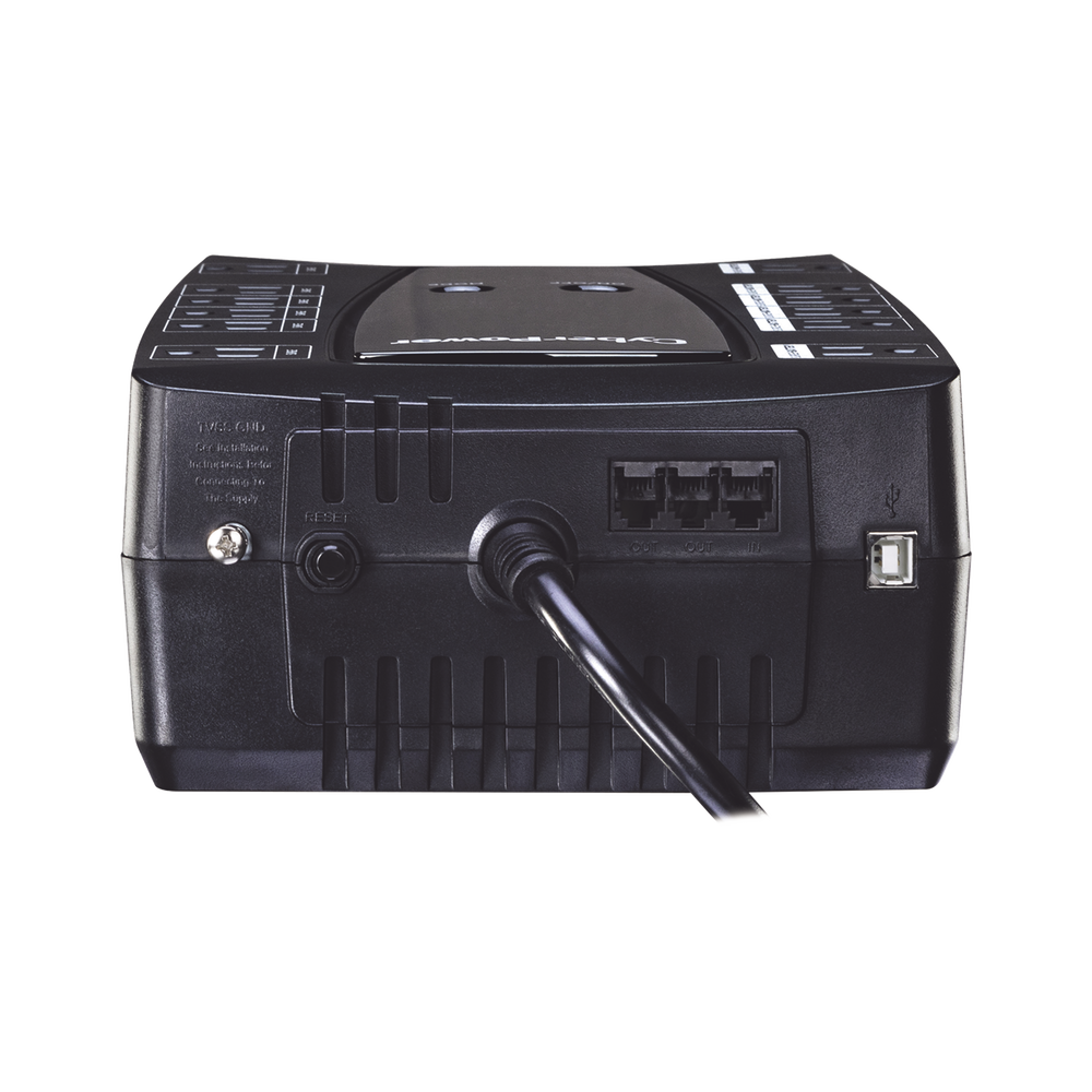 El UPS proporciona respaldo de batería, tomacorrientes protegidos contra sobretensiones y filtro EMI para proteger sus dispositivos. Su puerto incluido RJ11 / RJ45 puede proporcionar protección de línea de datos contra sobretensiones y picos. El indicador LED muestra el estado del UPS. Otras características incluyen batería reemplazable por el usuario y puerto de carga USB. También es compatible con PowerPanel® Power Management Software para realizar un apagado ordenado de la PC.